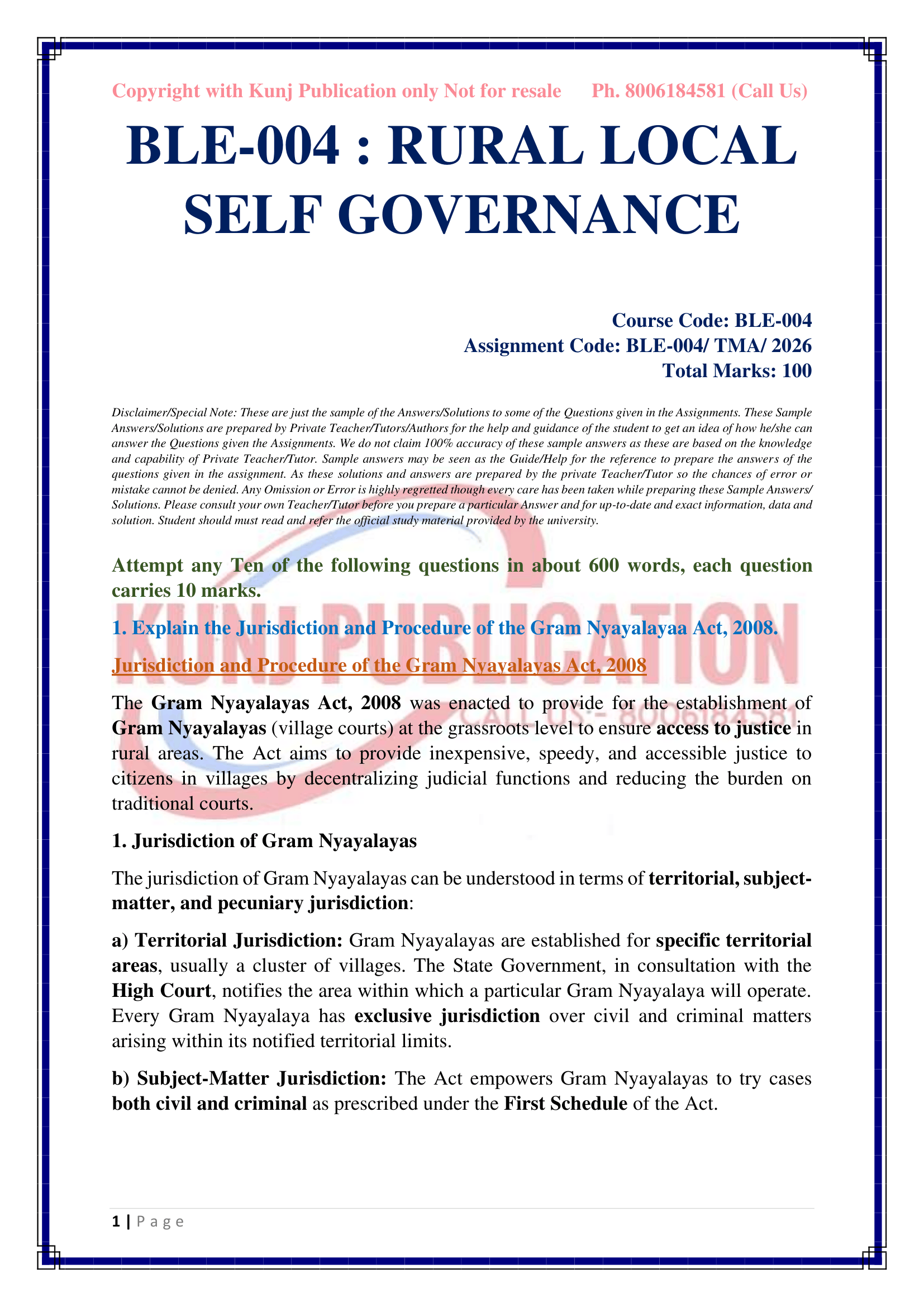 IGNOU BLE-004 SOLVED ASSIGNMENT 2026 ENGLISH MEDIUM