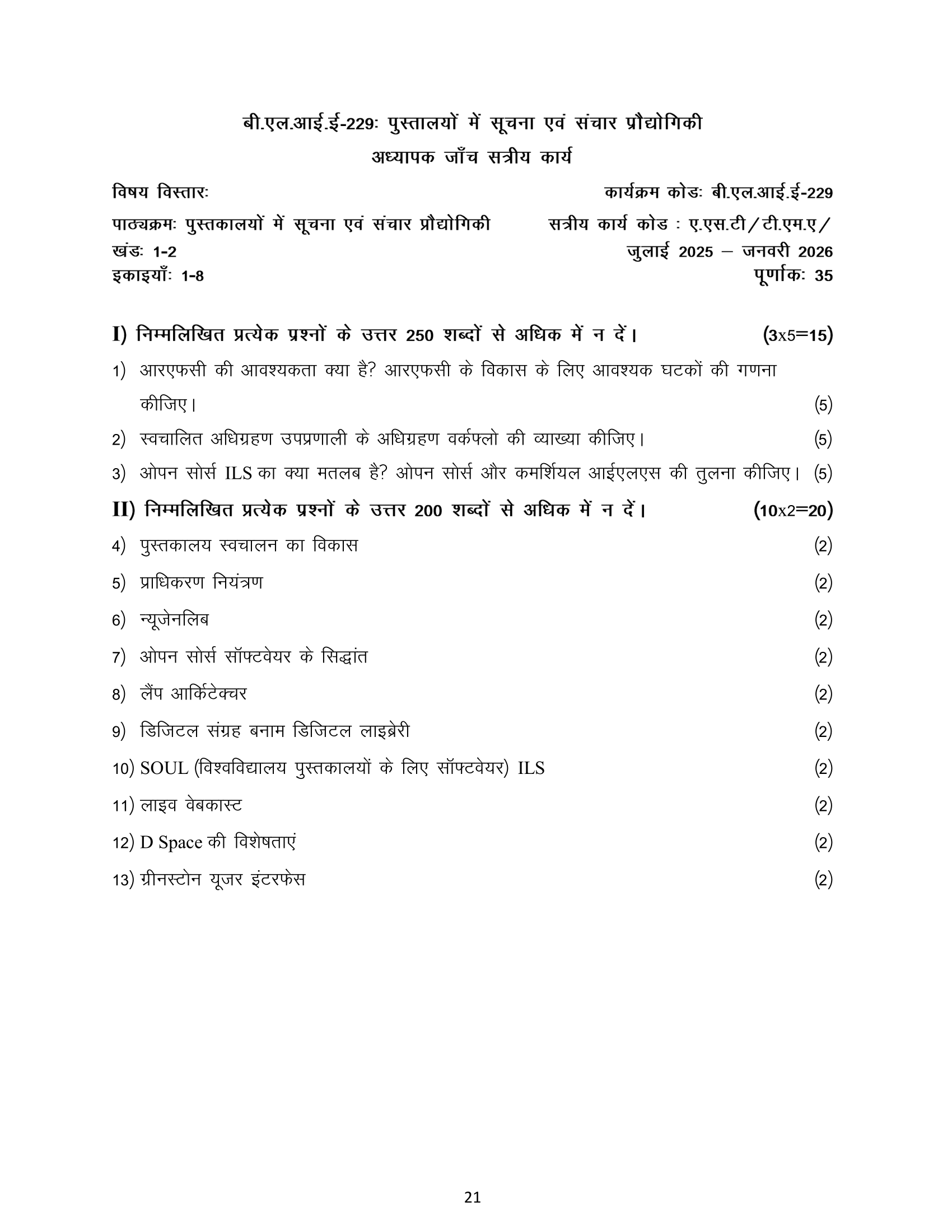 IGNOU BLIE-229 SOLVED ASSIGNMENT 2025-26 HINDI MEDIUM