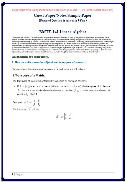 IGNOU BMTE-141 SOLVED GUESS PAPER/NOTES/SAMPLE PAPER ENGLISH MEDIUM