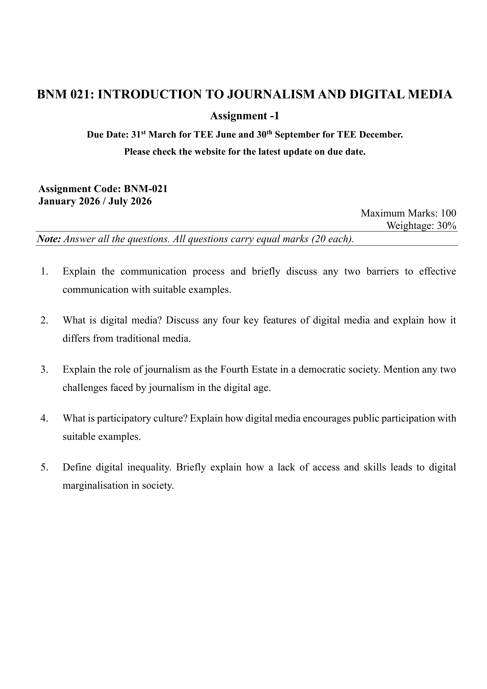 IGNOU BNM-021 SOLVED ASSIGNMENT 2026 ENGLISH MEDIUM