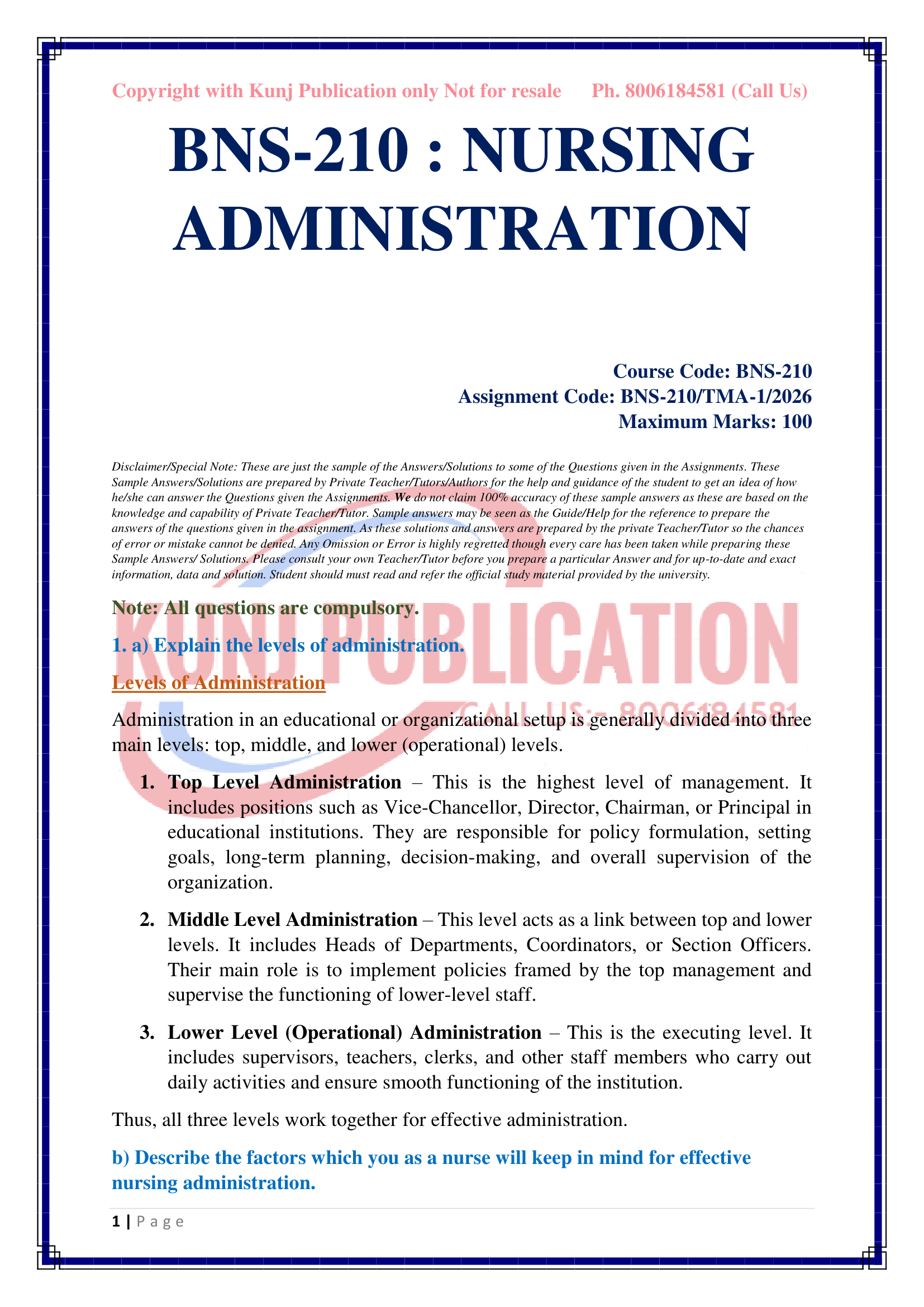 IGNOU BNS-210 TMA-01 SOLVED ASSIGNMENT 2026 ENGLISH MEDIUM
