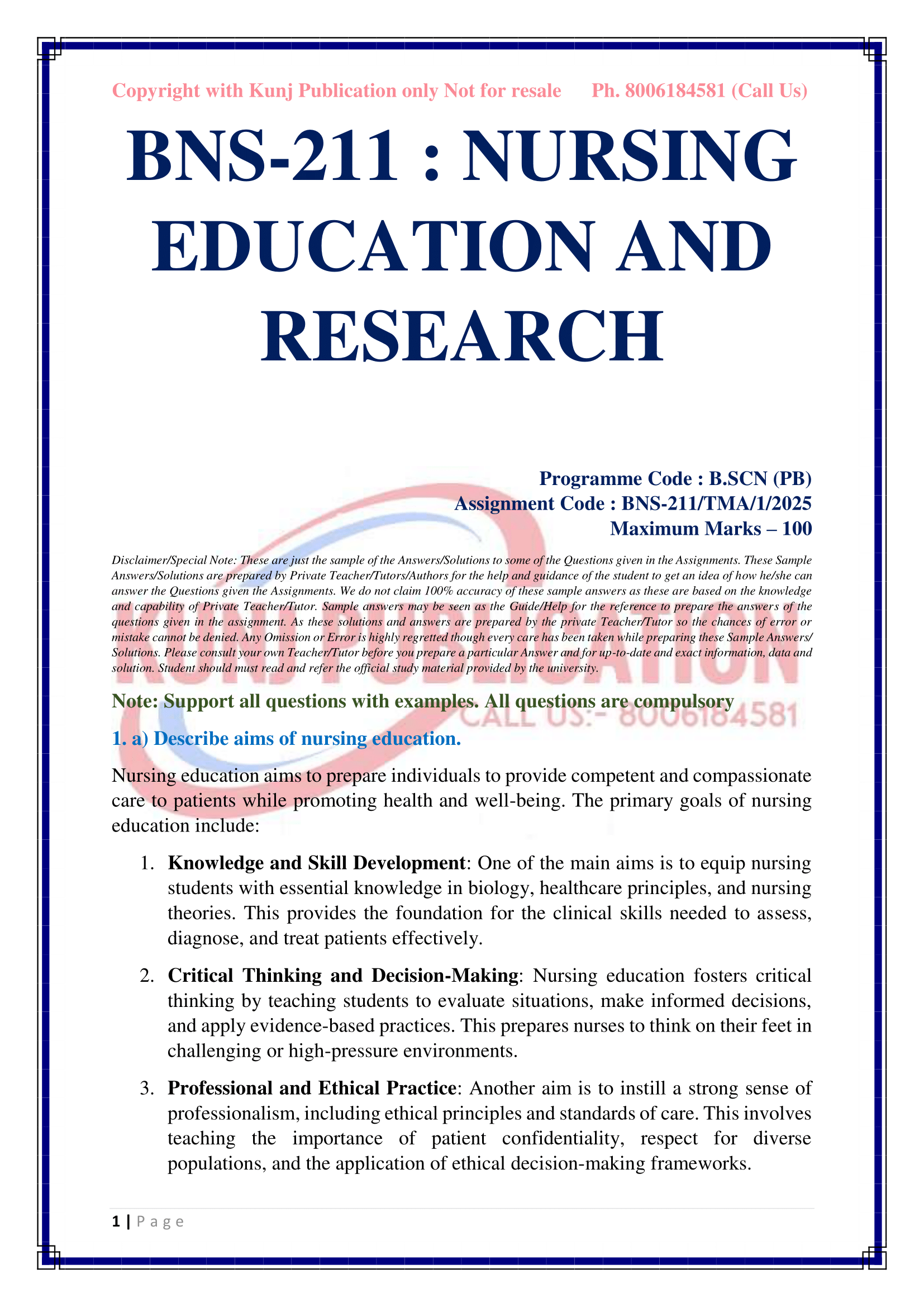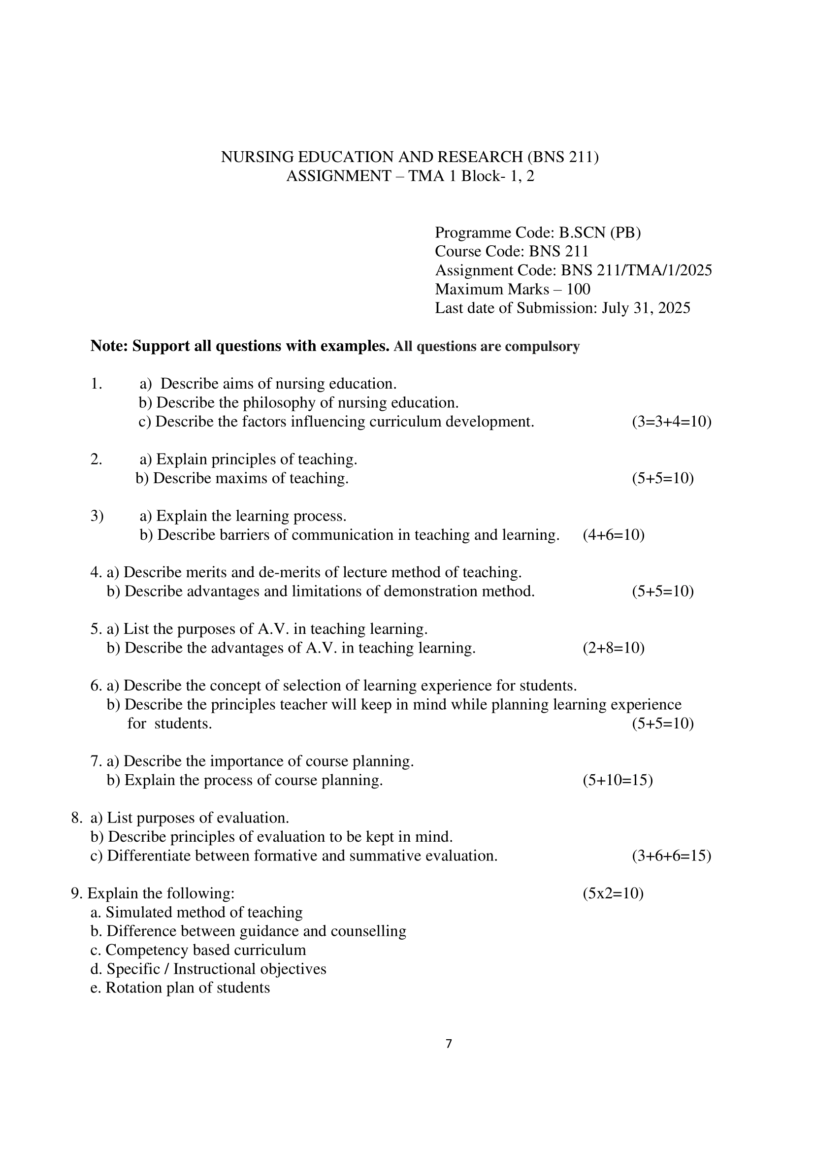 IGNOU BNS-211/TMA-1 SOLVED ASSIGNMENT 2025 ENGLISH MEDIUM