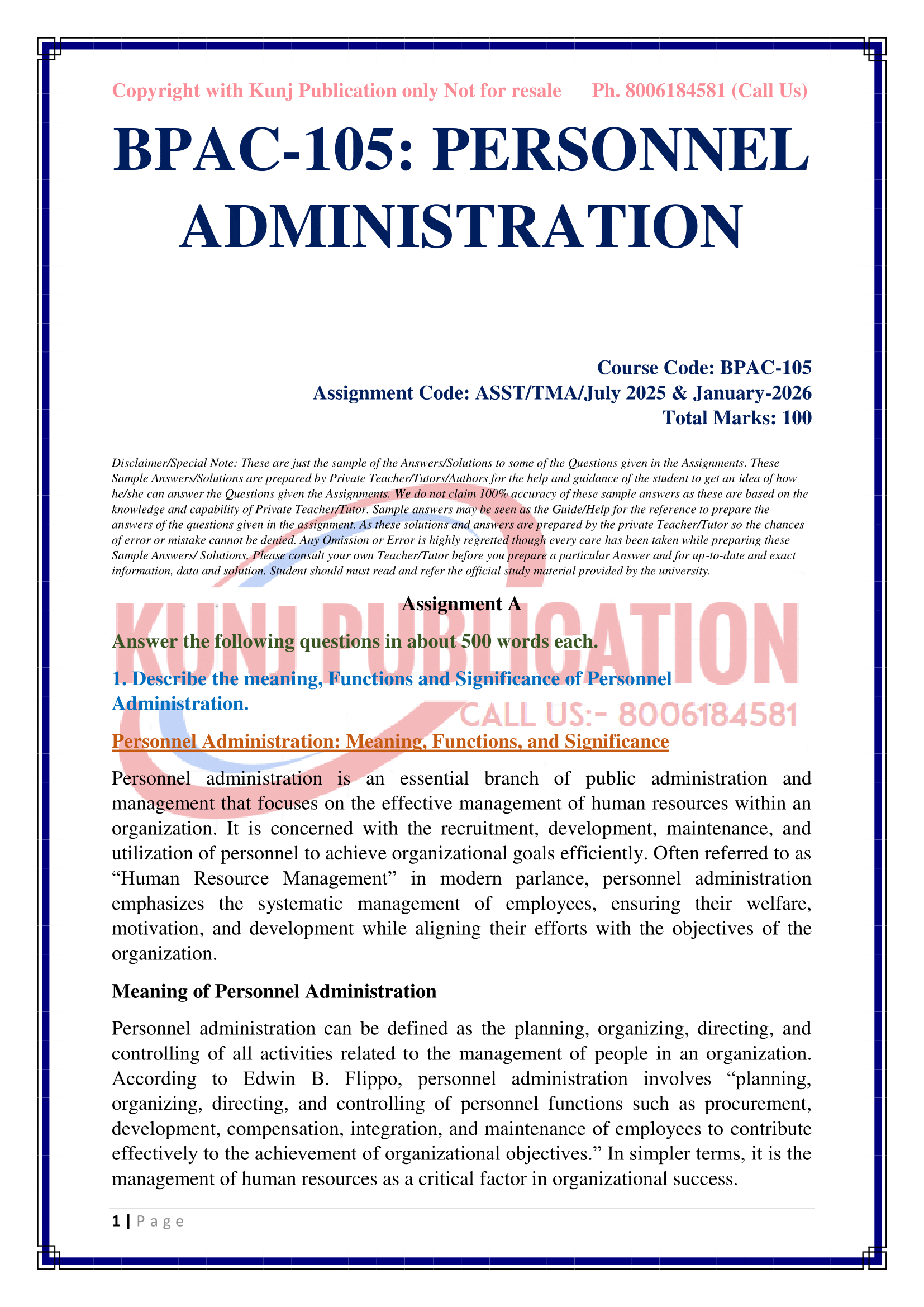 IGNOU BPAC-105 SOLVED ASSIGNMENT 2025-26 ENGLISH MEDIUM