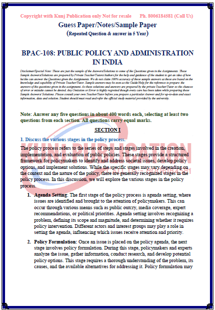 IGNOU BPAC-108 SOLVED GUESS PAPER/NOTES/SAMPLE PAPER ENGLISH MEDIUM