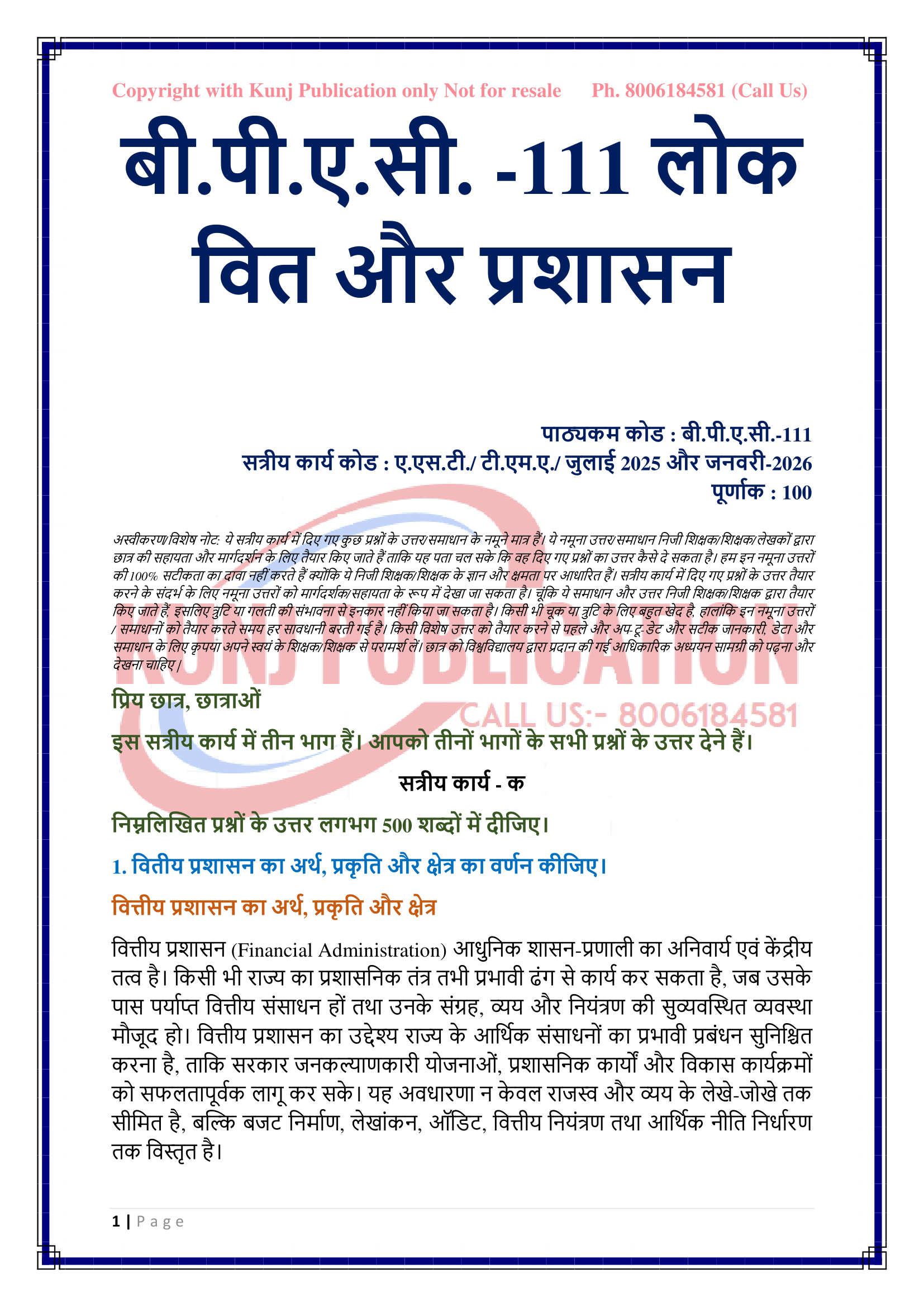 IGNOU BPAC-111 SOLVED ASSIGNMENT 2025-26 HINDI MEDIUM