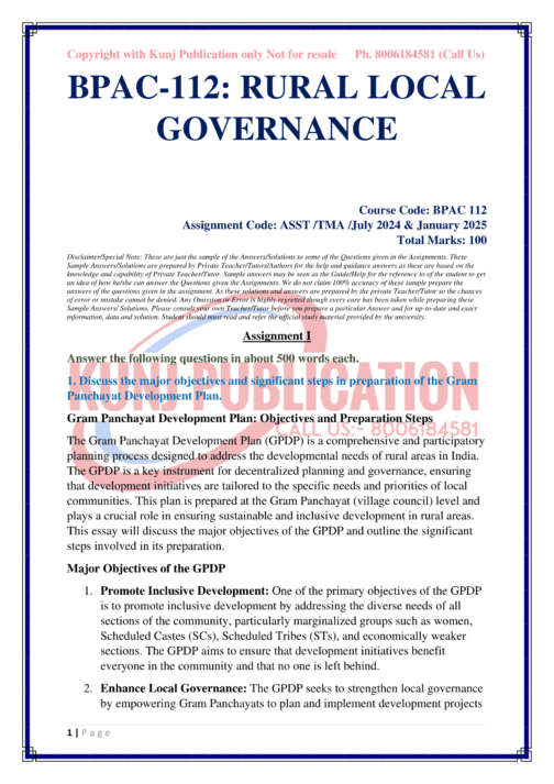 IGNOU BPAC-112 SOLVED ASSIGNMENT 2024-25 ENGLISH MEDIUM