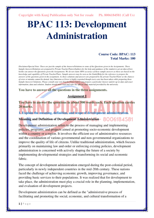 IGNOU BPAC-113 SOLVED ASSIGNMENT 2024-25 ENGLISH MEDIUM