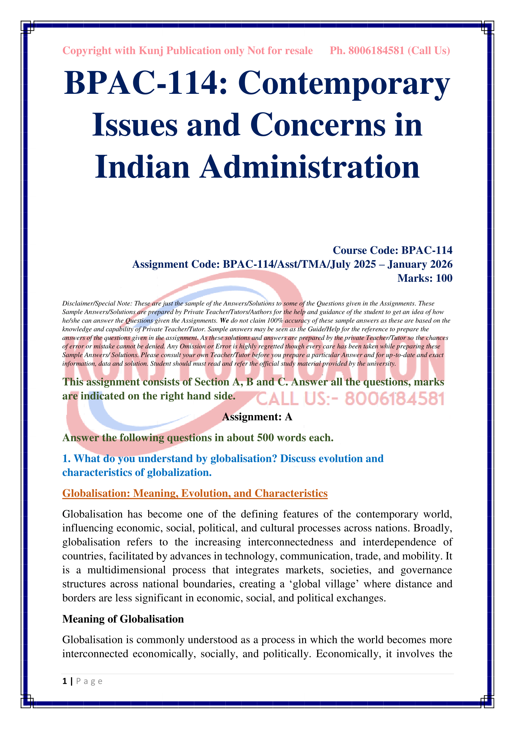 IGNOU BPAC-114 SOLVED ASSIGNMENT 2025-26 ENGLISH MEDIUM