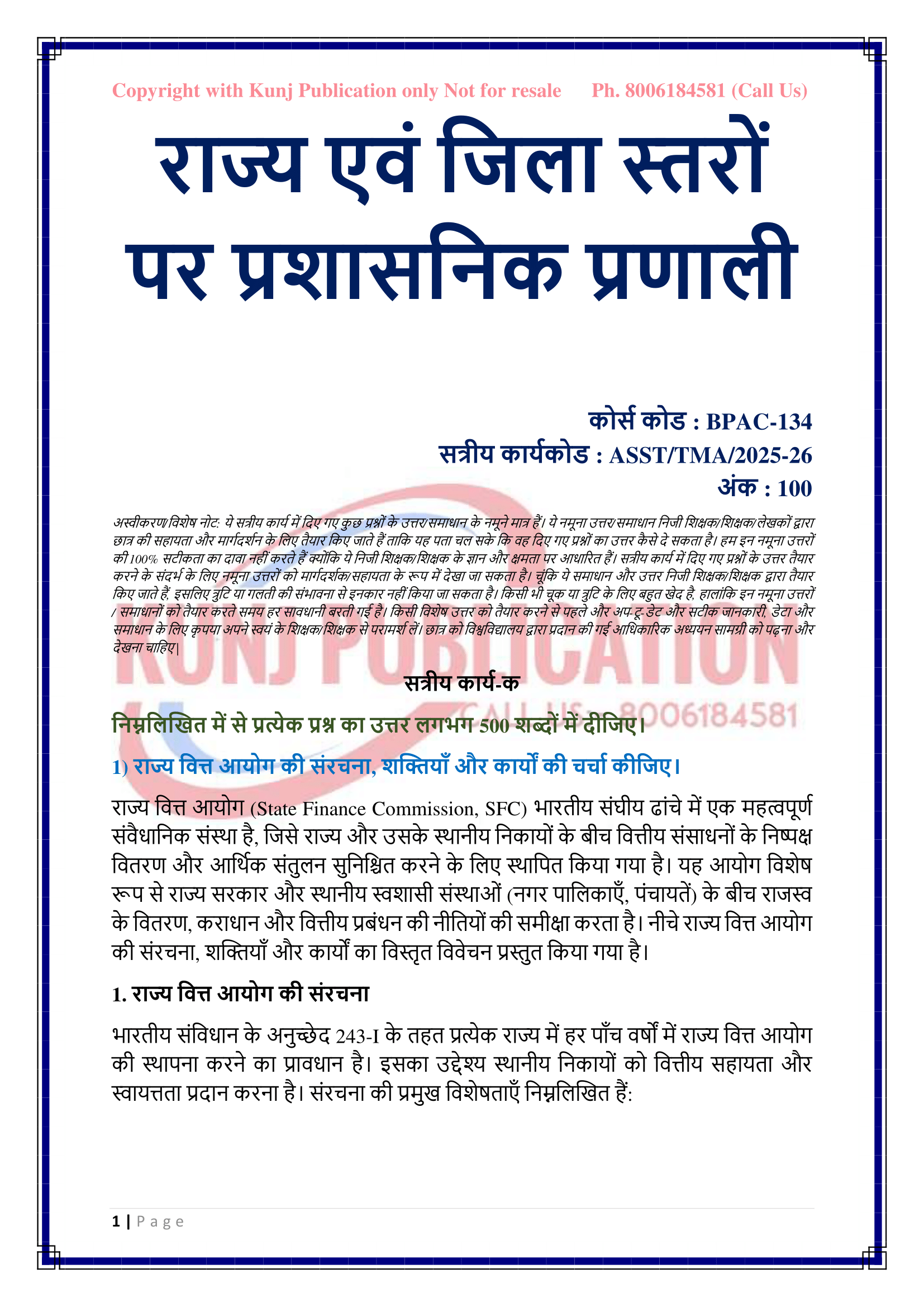 IGNOU BPAC-134 SOLVED ASSIGNMENT 2025-26 HINDI MEDIUM