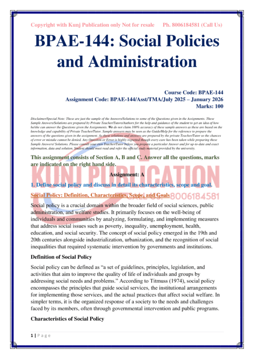 IGNOU BPAE-144 SOLVED ASSIGNMENT 2025-26 ENGLISH MEDIUM