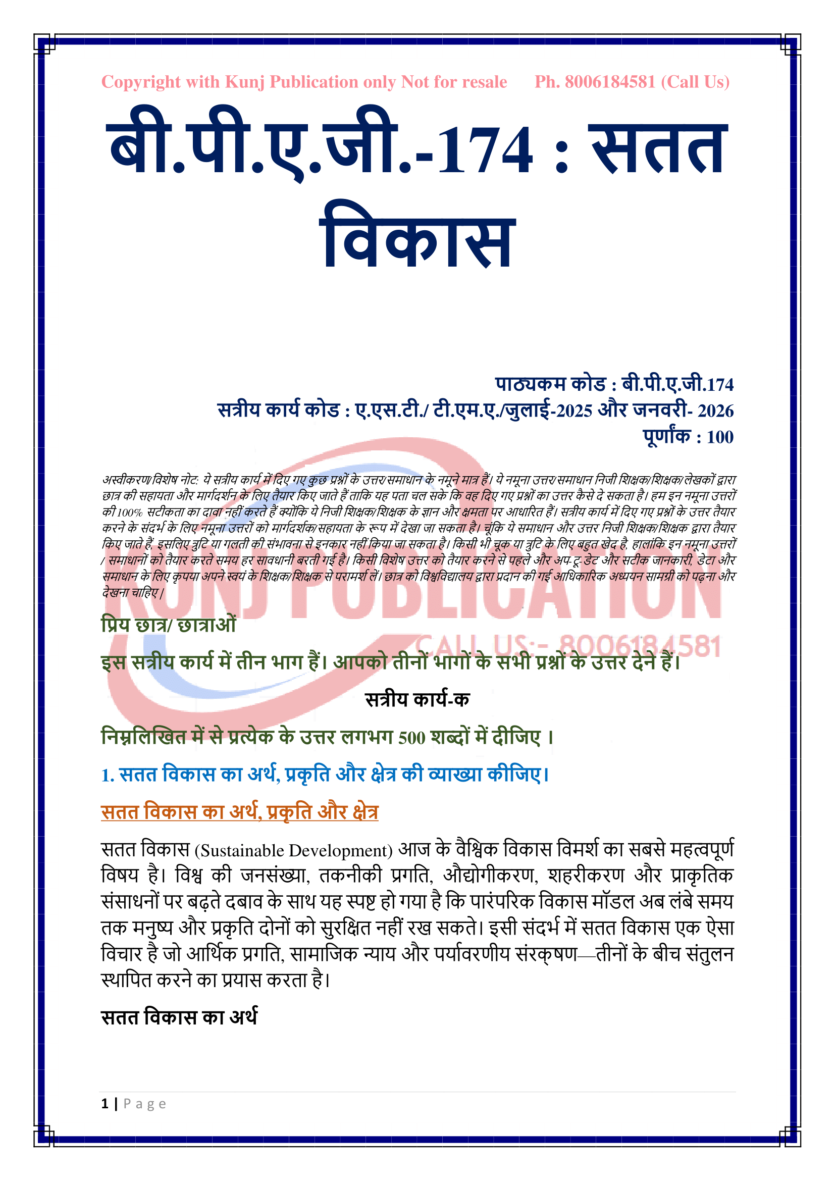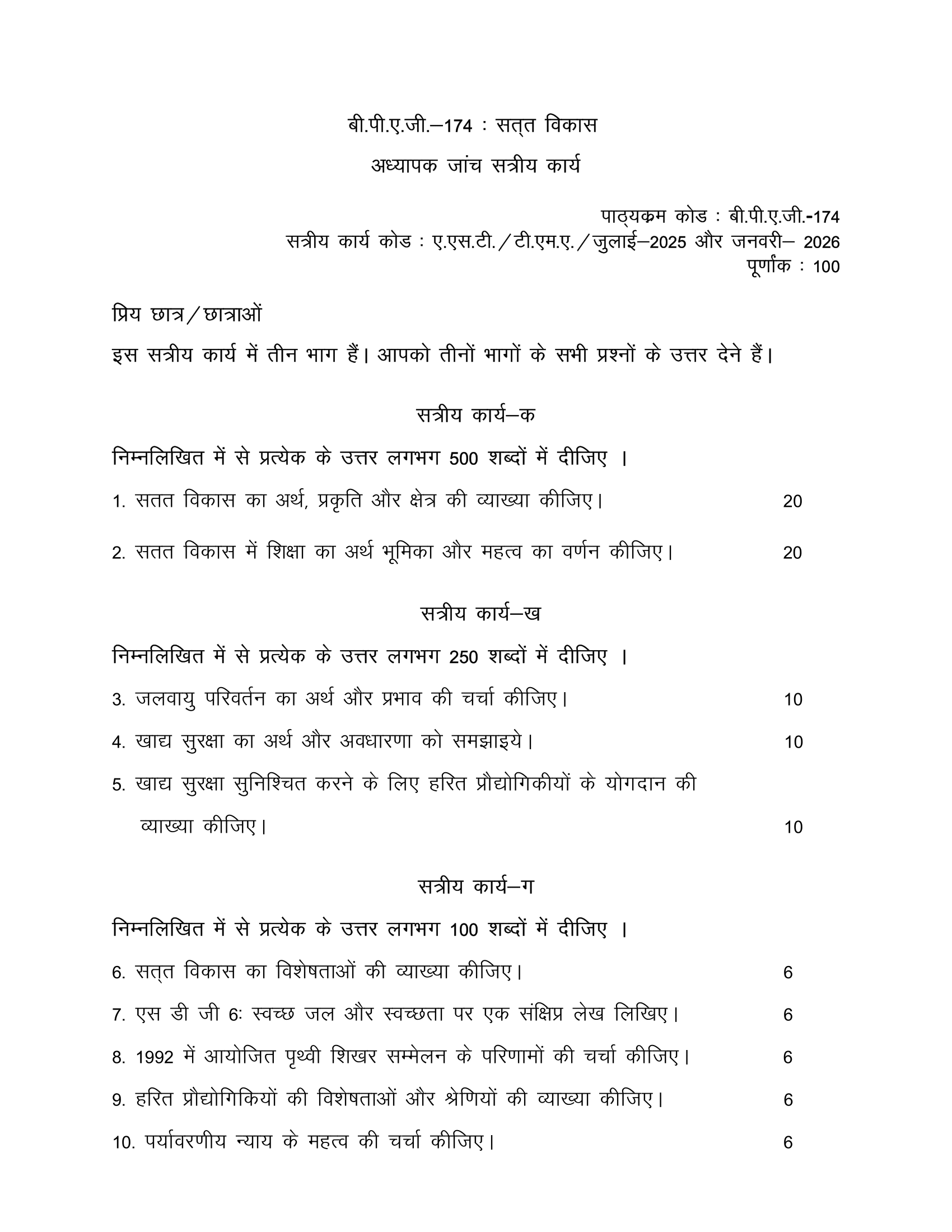 IGNOU BPAG-174 SOLVED ASSIGNMENT 2025-26 HINDI MEDIUM
