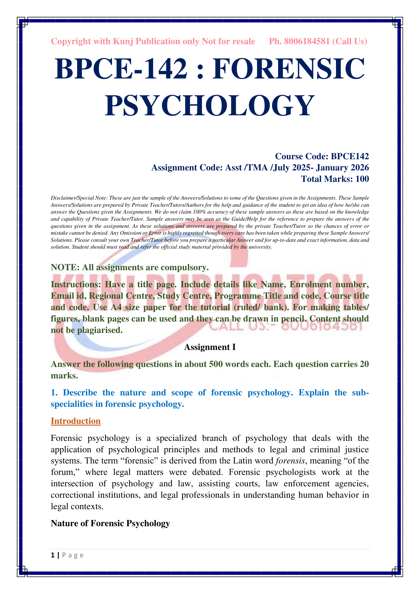 IGNOU BPCE-142 SOLVED ASSIGNMENT 2025-26 ENGLISH MEDIUM