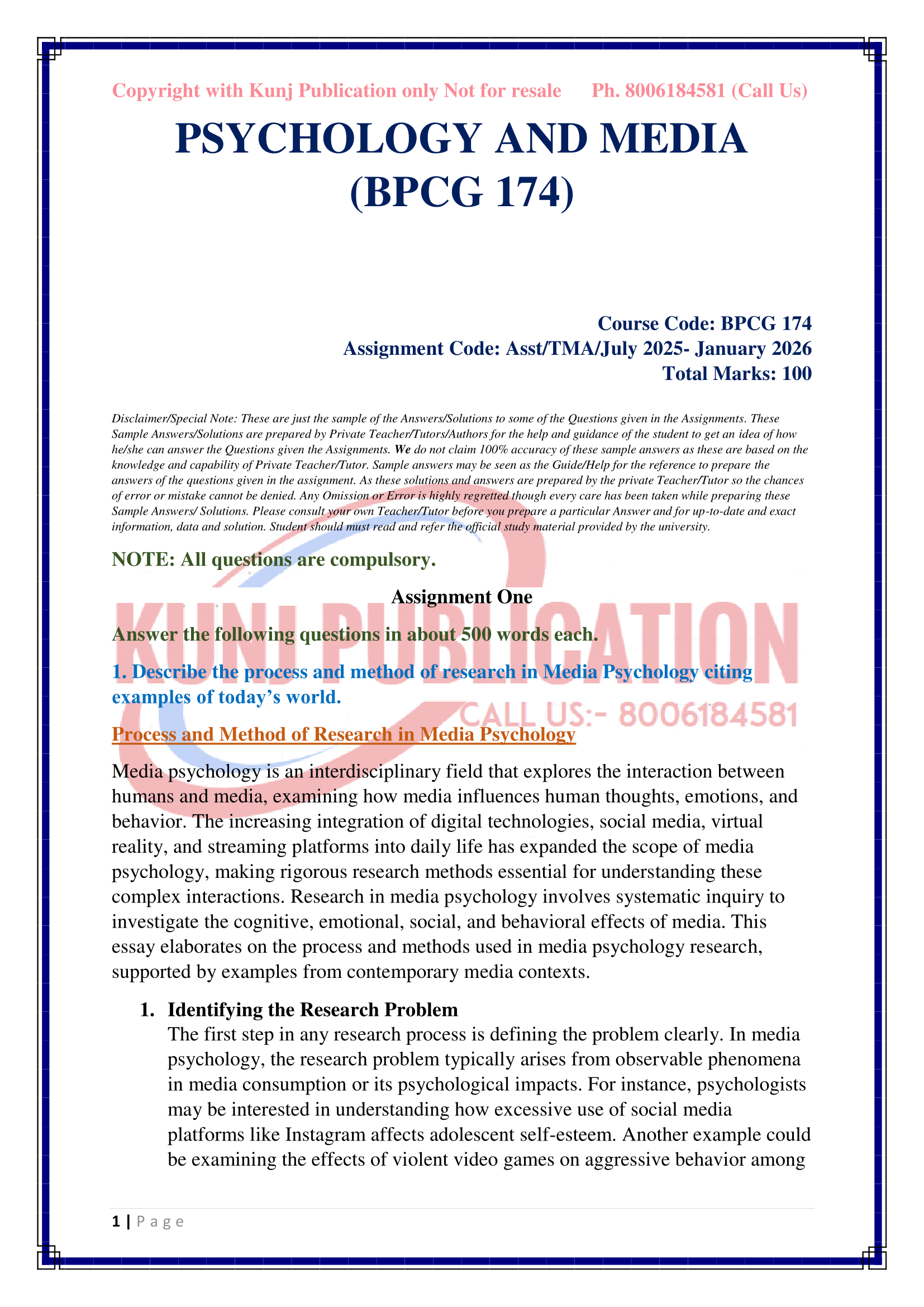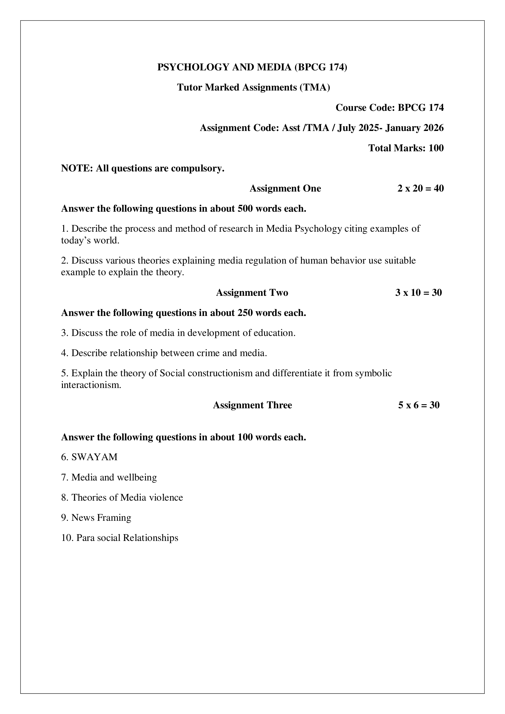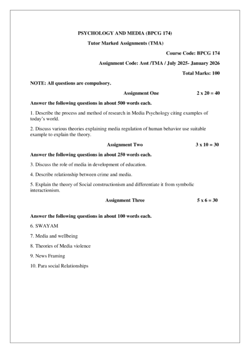IGNOU BPCG-174 SOLVED ASSIGNMENT 2025-26 ENGLISH MEDIUM