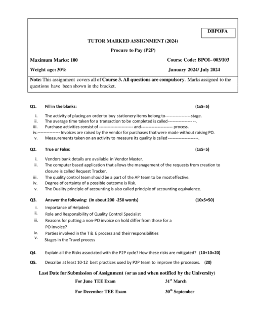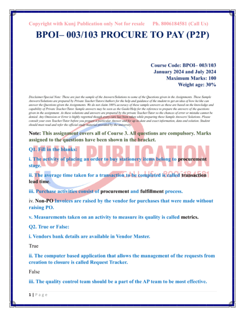 IGNOU BPOI-003/103 SOLVED ASSIGNMENT 2024 ENGLISH MEDIUM