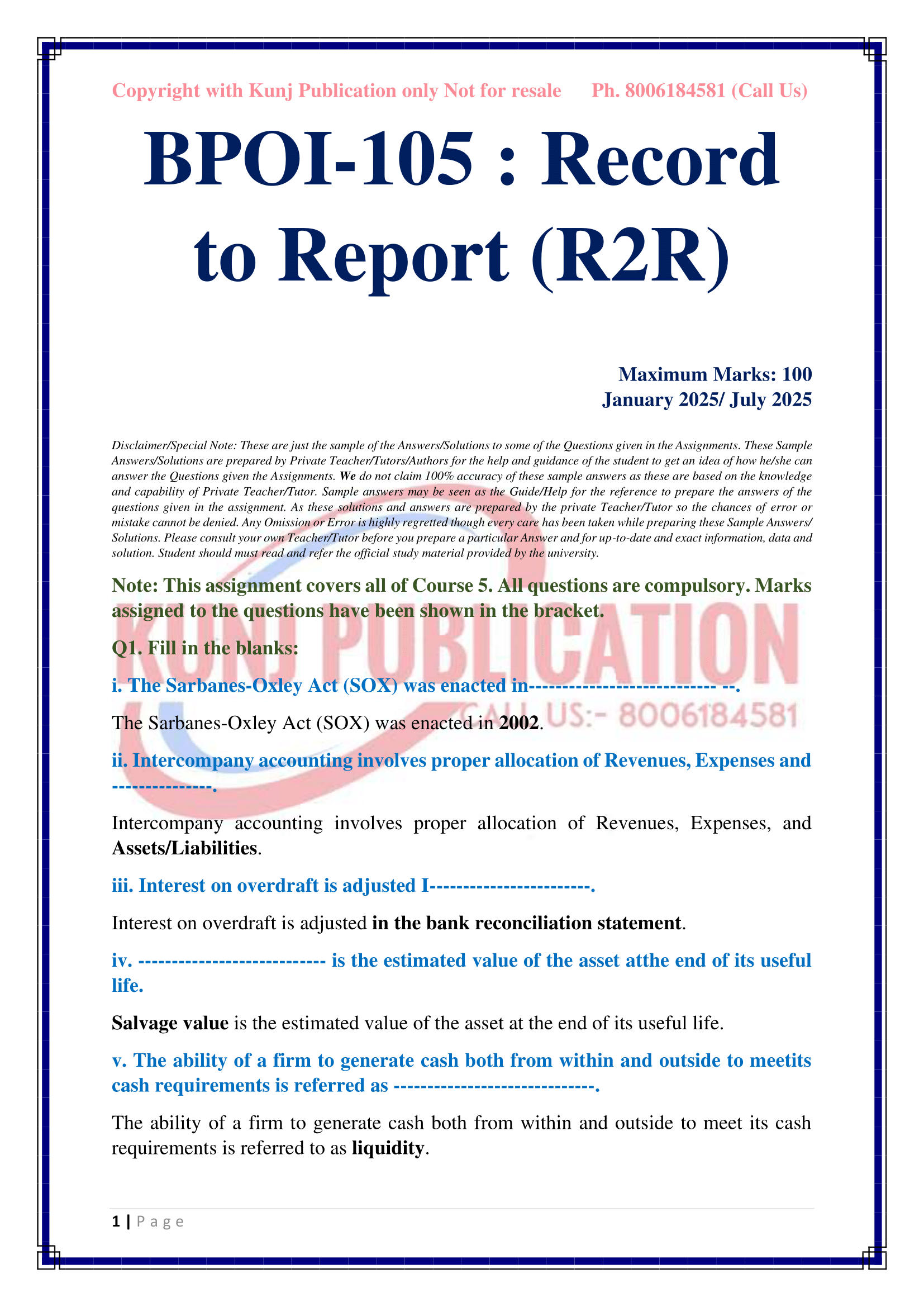 IGNOU BPOI-005/105 SOLVED ASSIGNMENT 2025 ENGLISH MEDIUM