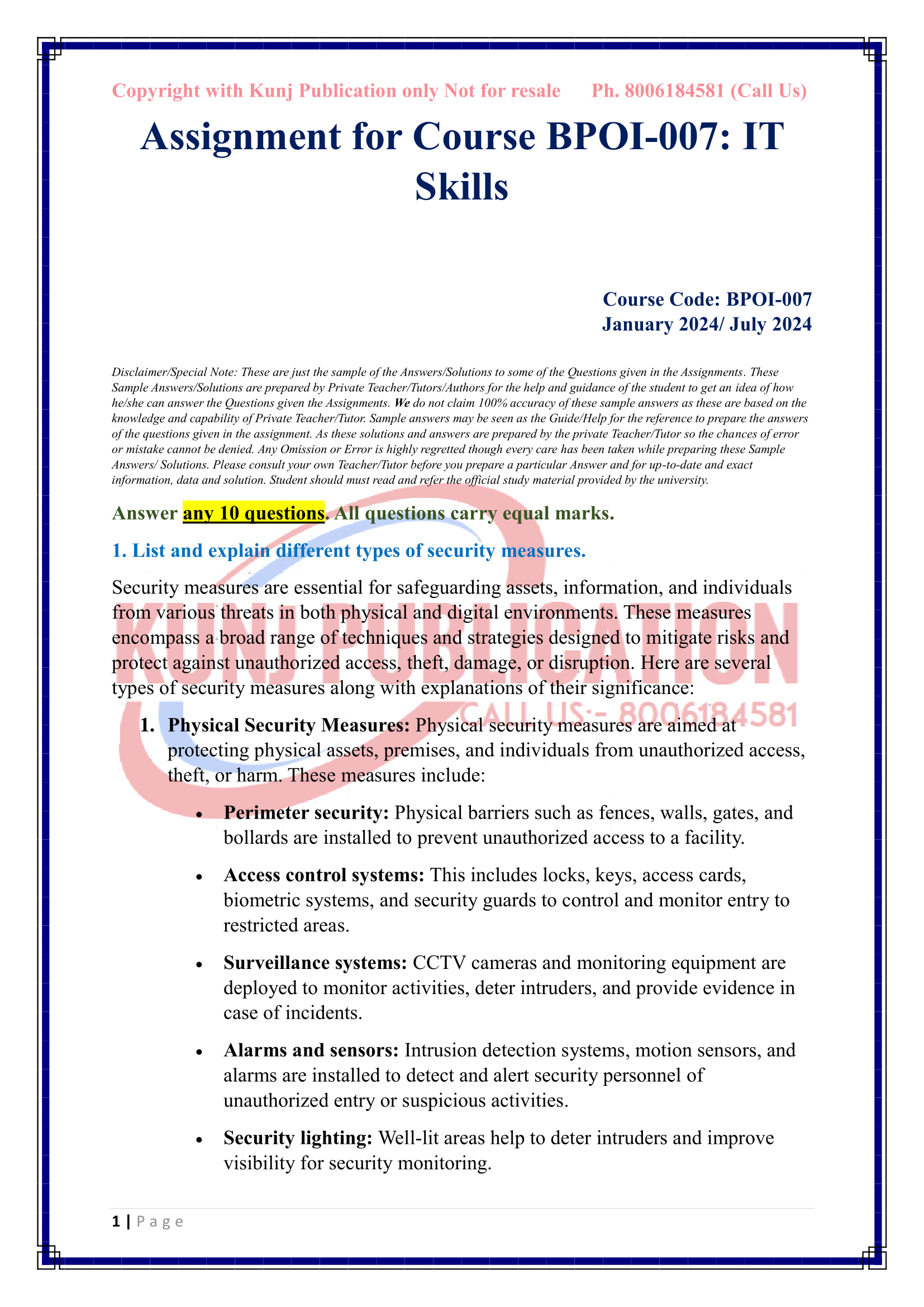 IGNOU BPOI-007 SOLVED ASSIGNMENT 2024 ENGLISH MEDIUM