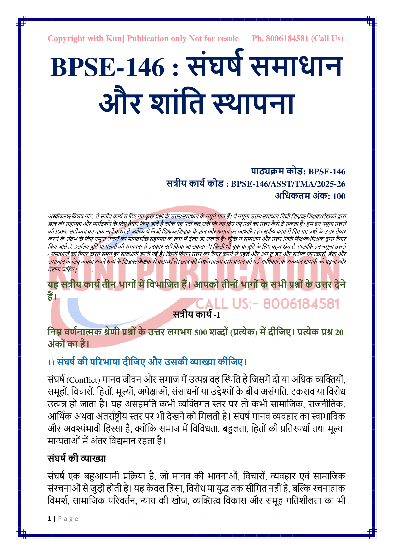 IGNOU BPSE-146 SOLVED ASSIGNMENT 2025-26 HINDI MEDIUM