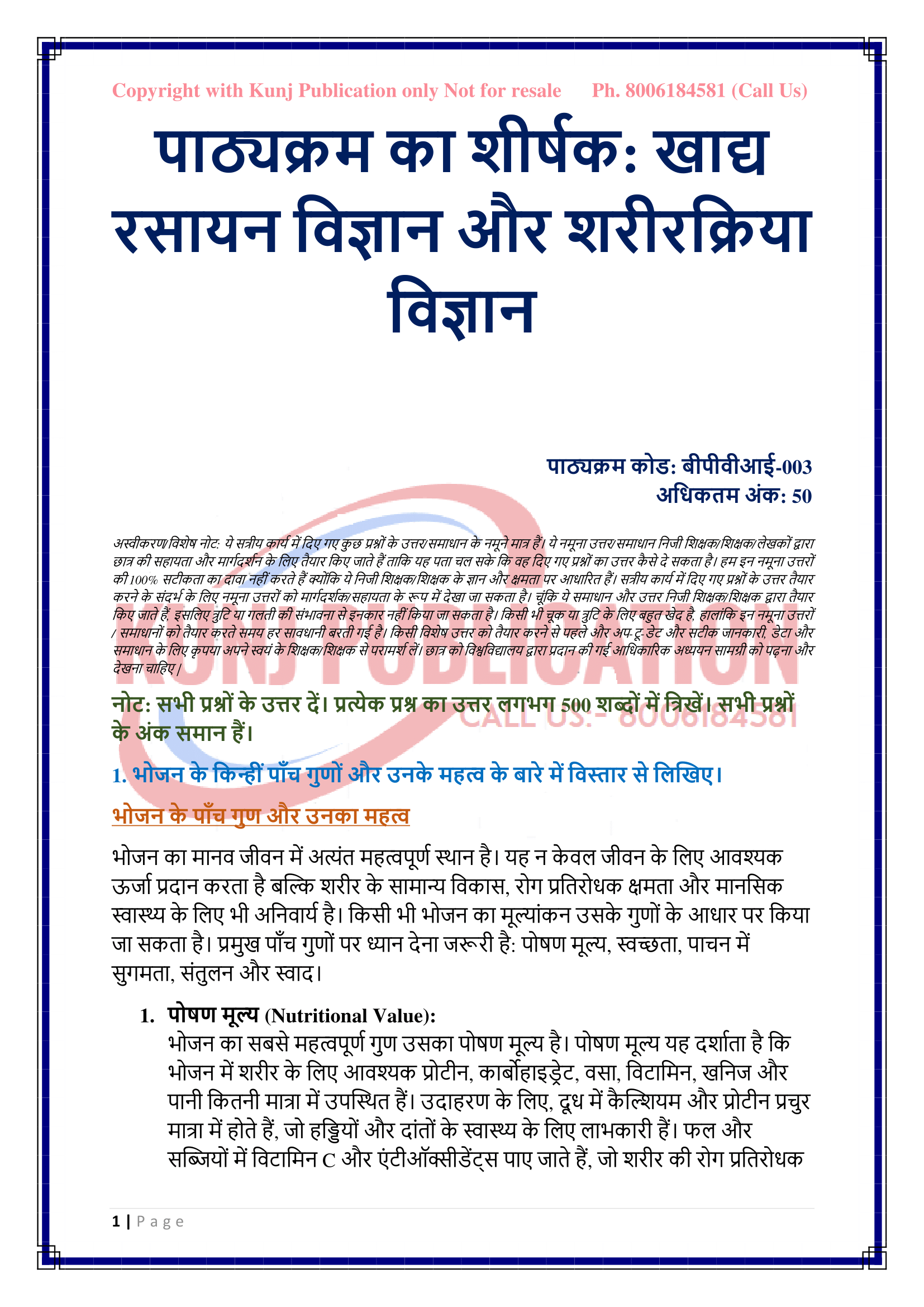 IGNOU BPVI-003 SOLVED ASSIGNMENT 2025-26 HINDI MEDIUM