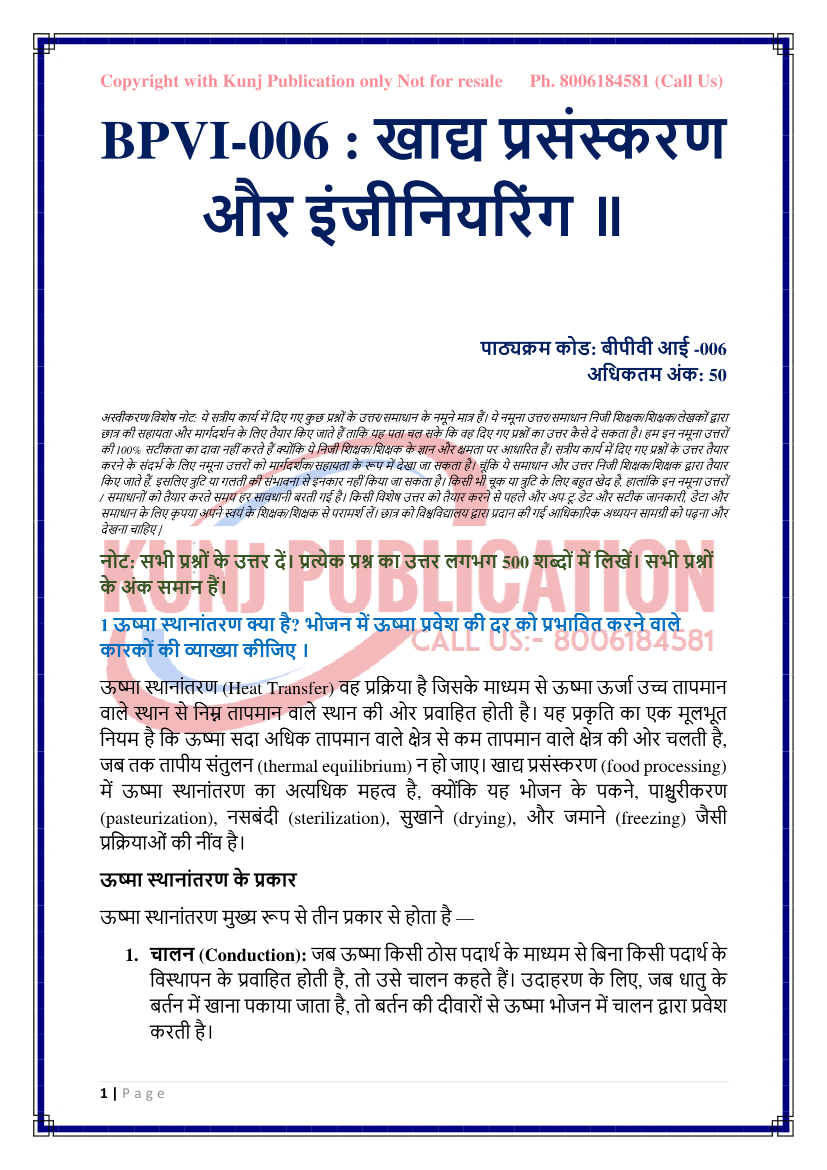 IGNOU BPVI-006 SOLVED ASSIGNMENT 2025-26 HINDI MEDIUM