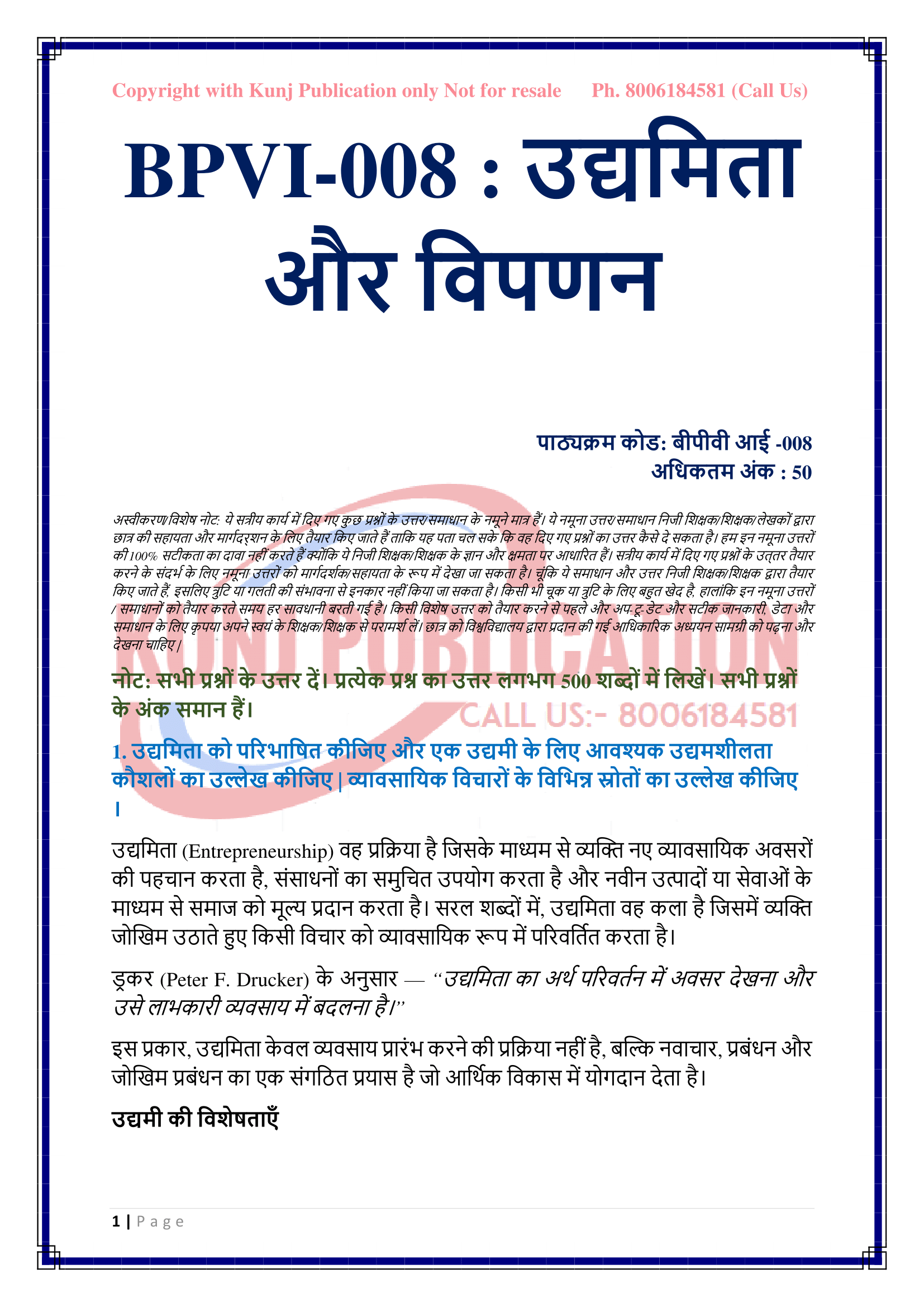 IGNOU BPVI-008 SOLVED ASSIGNMENT 2025-26 HINDI MEDIUM