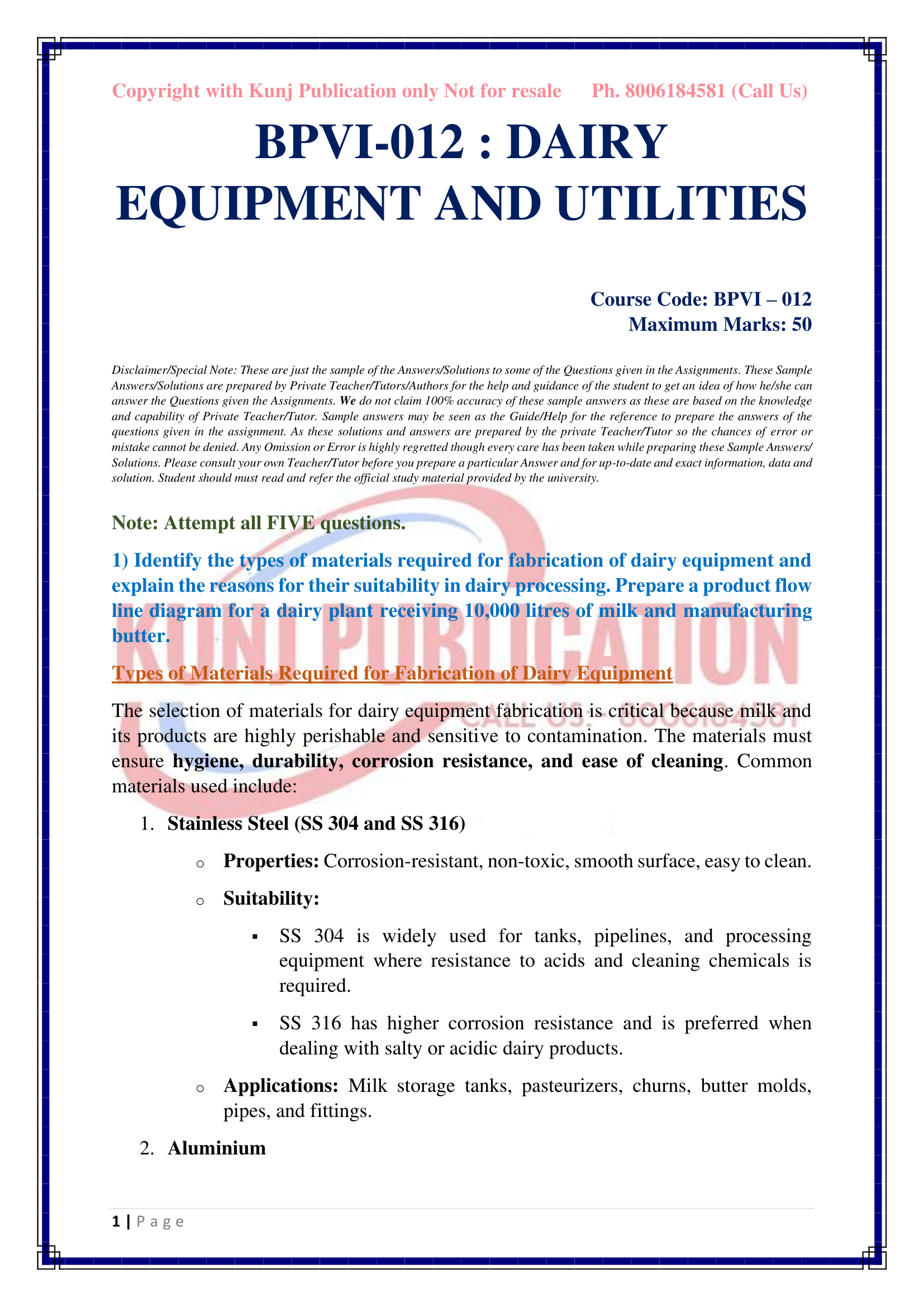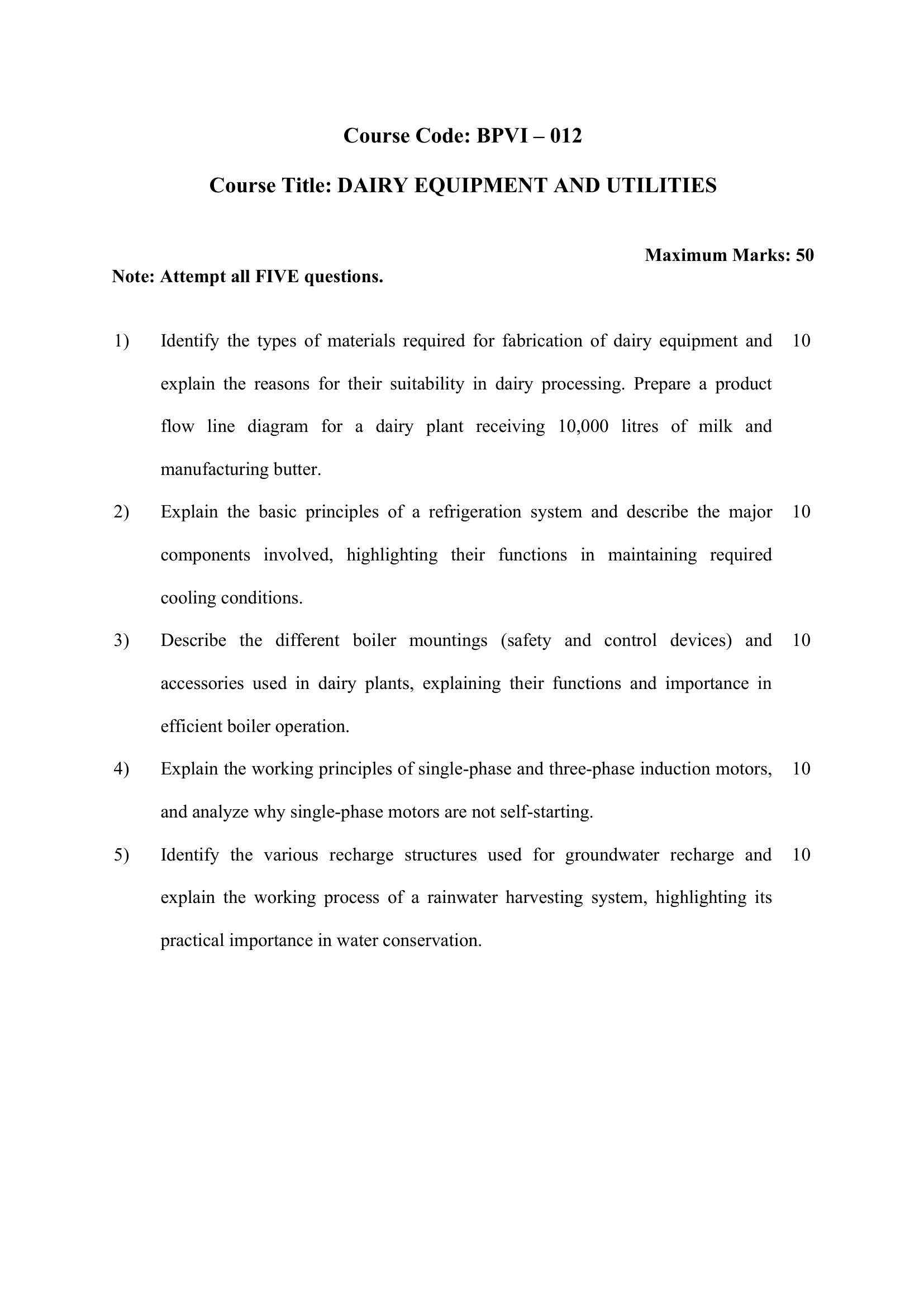 | Course | DIPLOMA IN DAIRY TECHNOLOGY (DDT) |