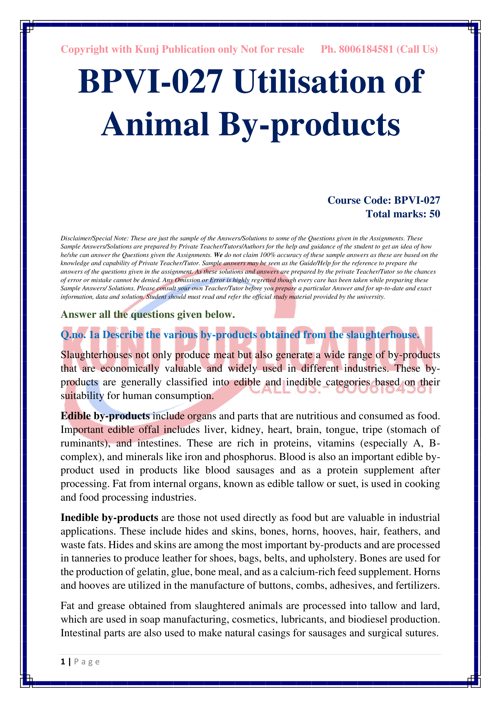 IGNOU BPVI-027 SOLVED ASSIGNMENT 2026 ENGLISH MEDIUM
