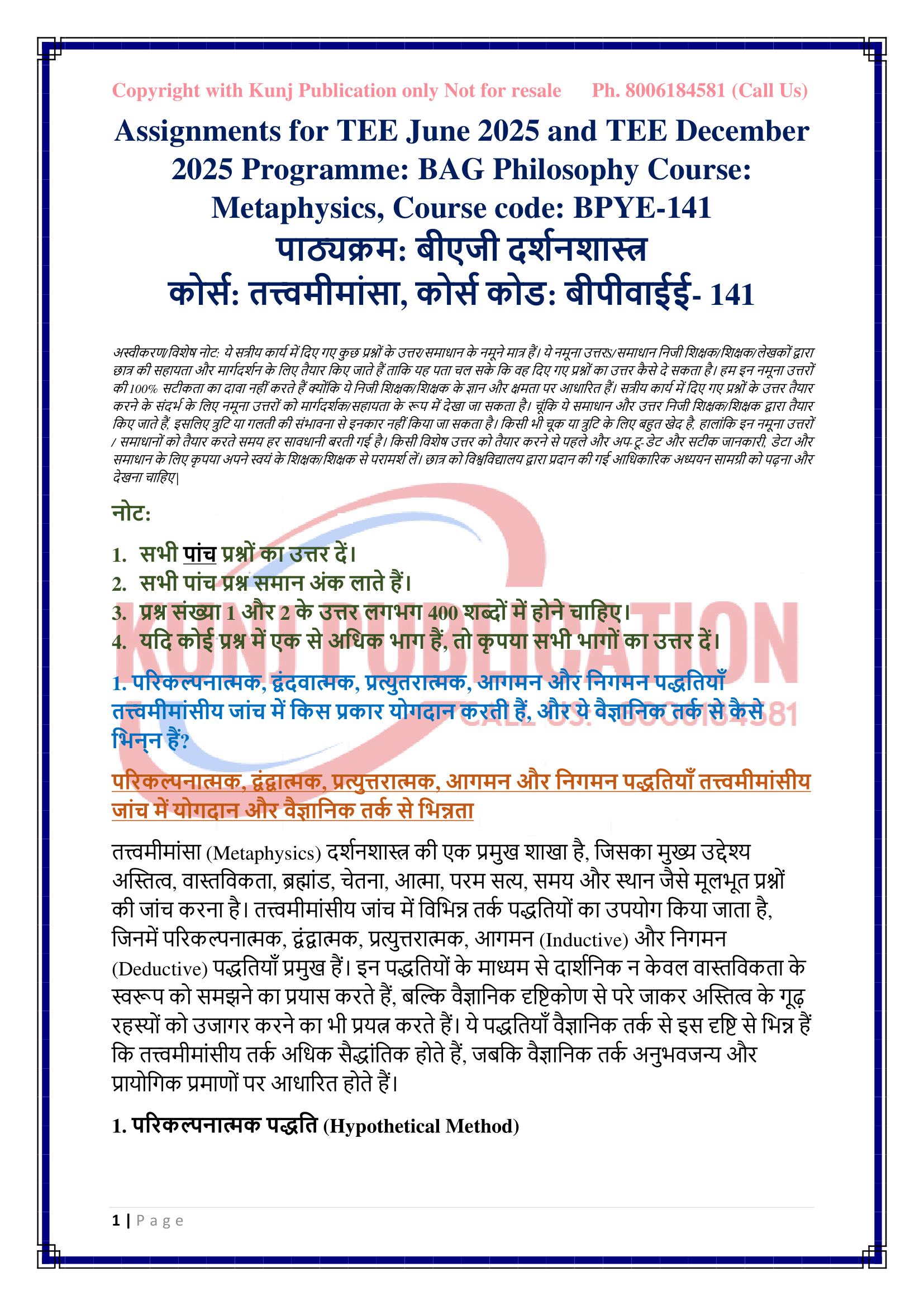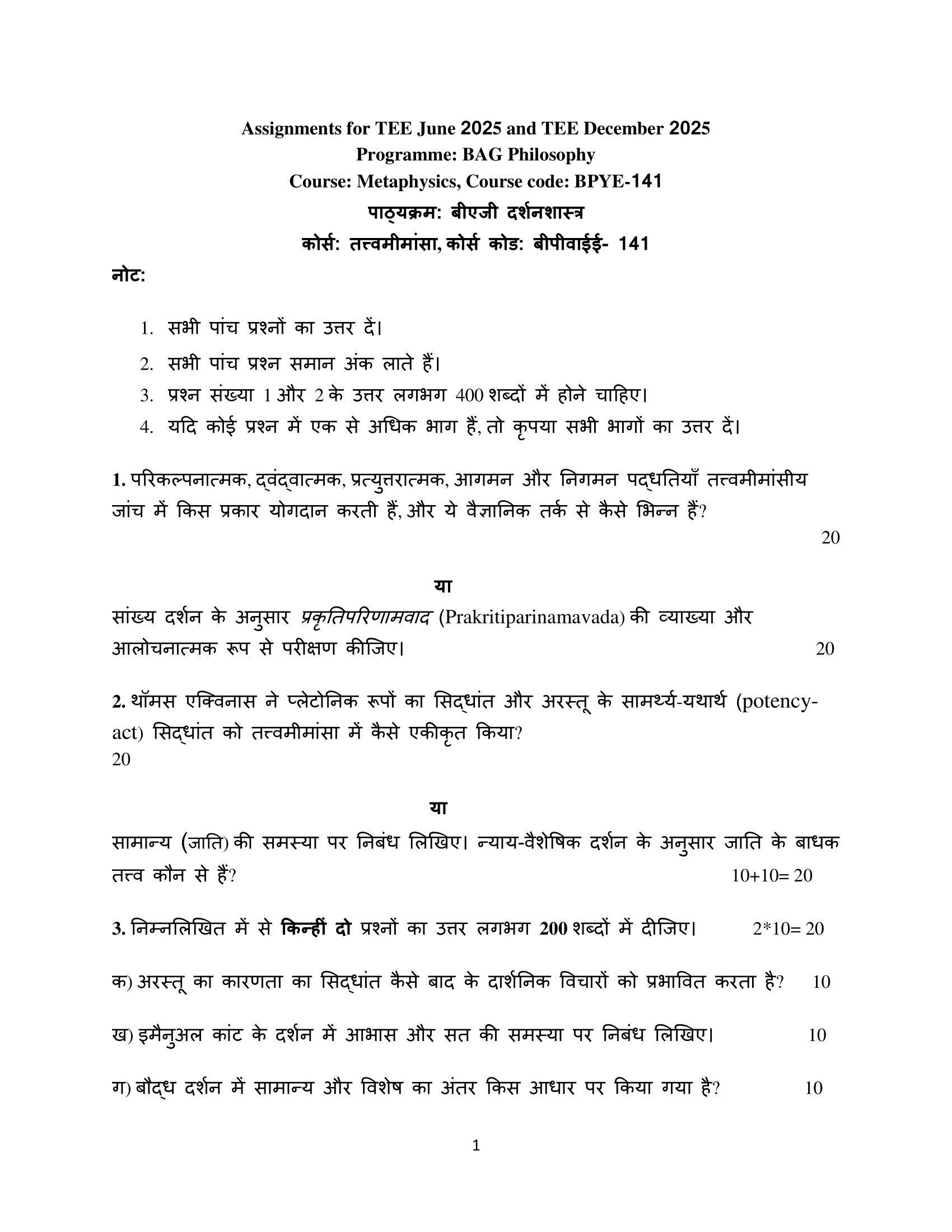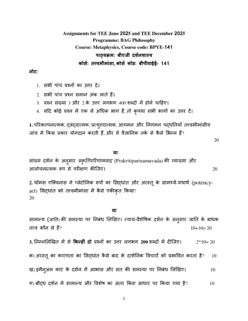 IGNOU BPYE-141 SOLVED ASSIGNMENT 2025 HINDI MEDIUM