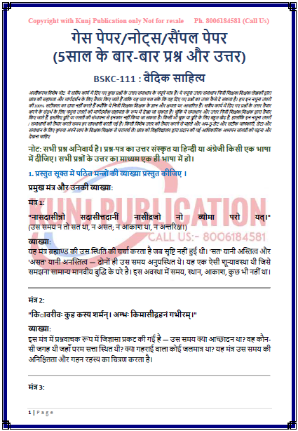 IGNOU BSKC-111 SOLVED GUESS PAPER/NOTES/SAMPLE PAPER SANSKRIT MEDIUM