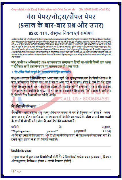 IGNOU BSKC-114 SOLVED GUESS PAPER/NOTES/SAMPLE PAPER SANSKRIT MEDIUM