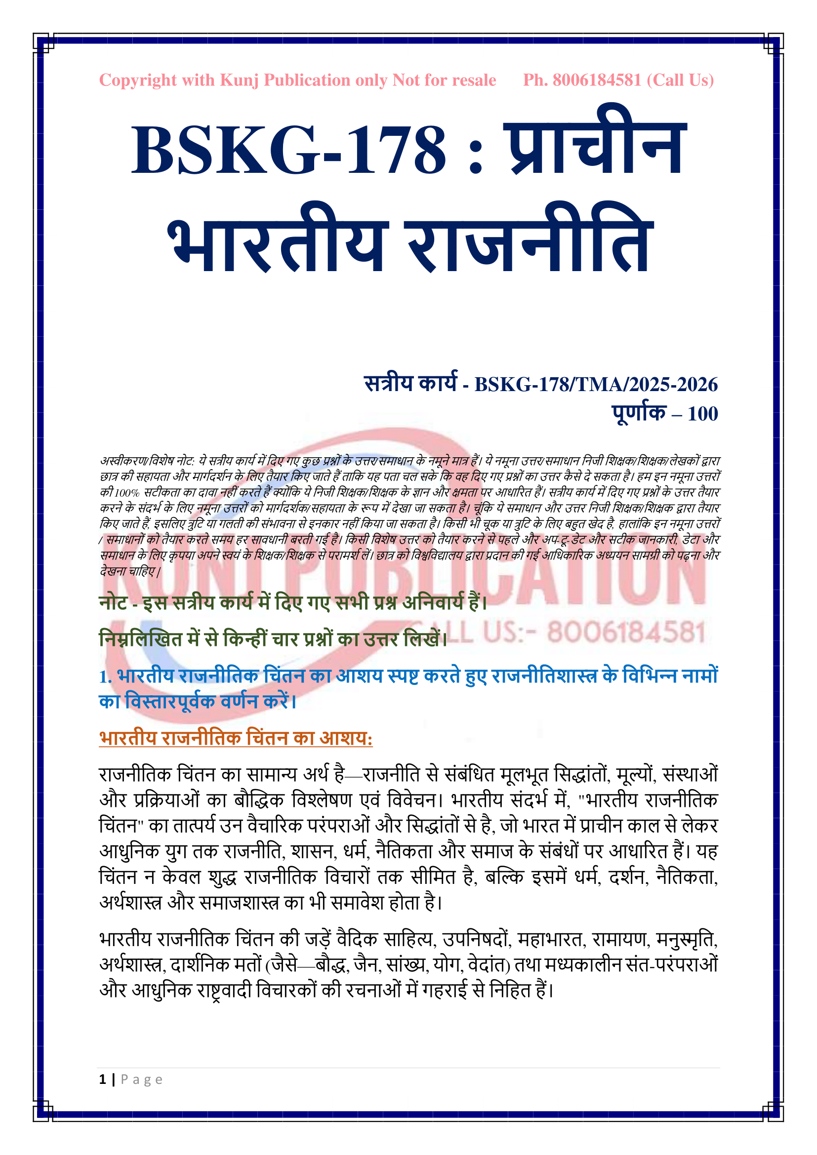 IGNOU BSKG-178 SOLVED ASSIGNMENT 2025-26 SANSKRIT MEDIUM