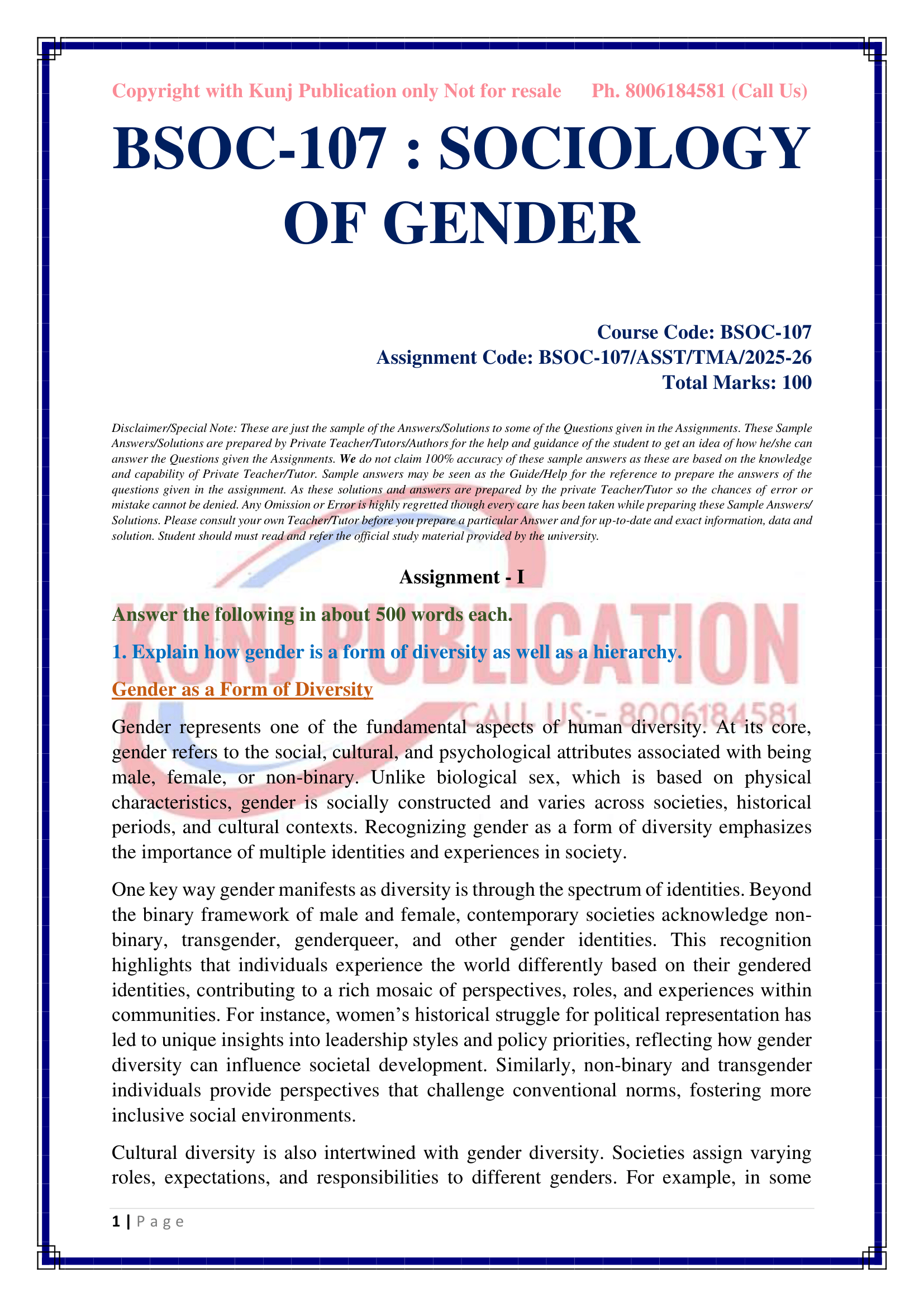 IGNOU BSOC-107 SOLVED ASSIGNMENT 2025-26 ENGLISH MEDIUM