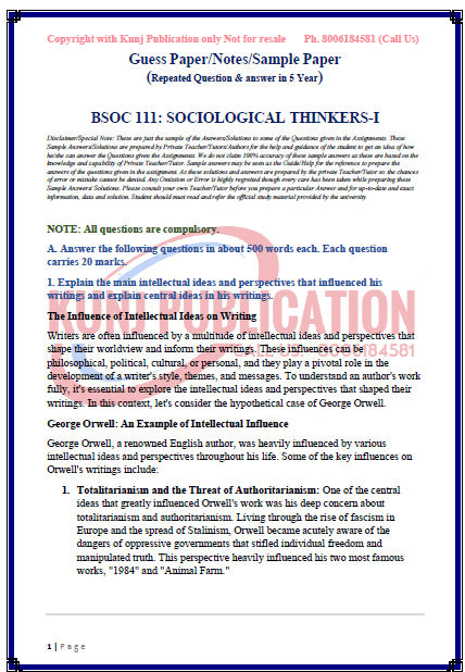 TITLE NAME | BSOC-111 Solved Guess Paper ENGLISH MEDIUM |