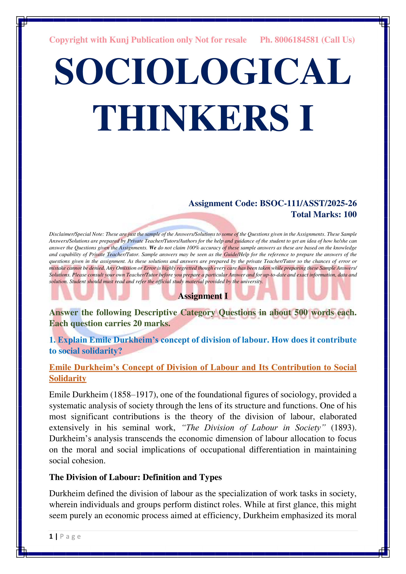 IGNOU BSOC-111 SOLVED ASSIGNMENT 2025-26 ENGLISH MEDIUM