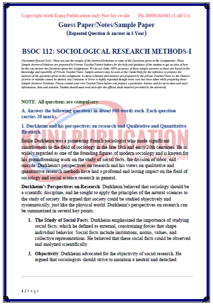 TITLE NAME | BSOC-112 Solved Guess Paper ENGLISH MEDIUM |
