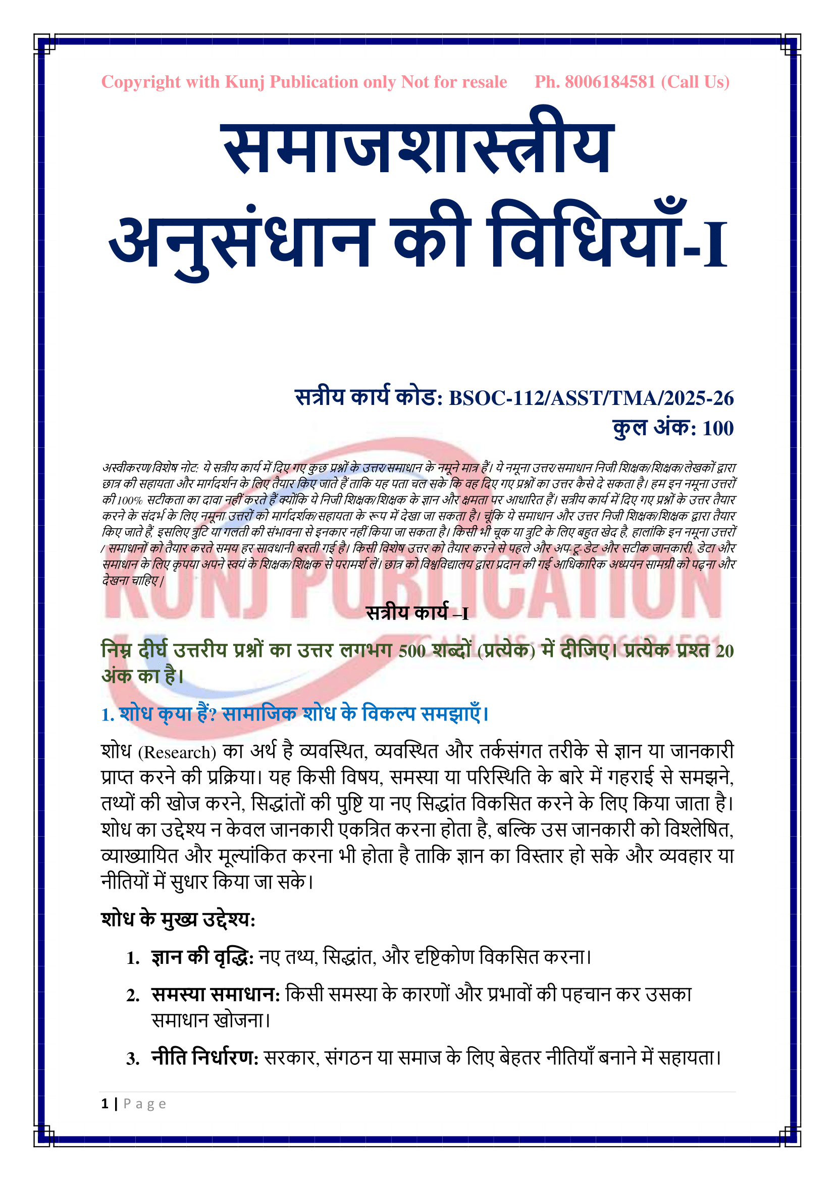 IGNOU BSOC-112 SOLVED ASSIGNMENT 2025-26 HINDI MEDIUM