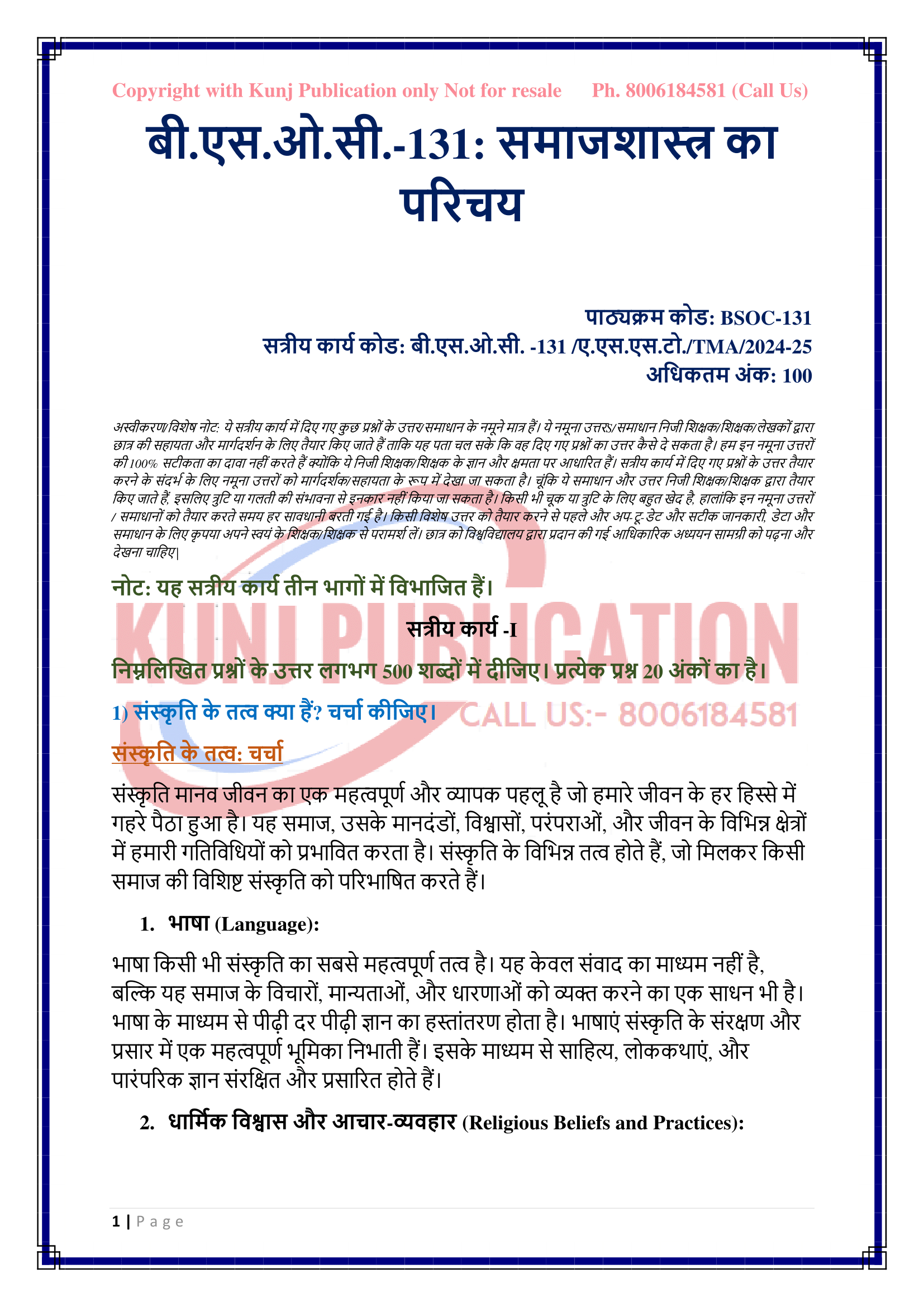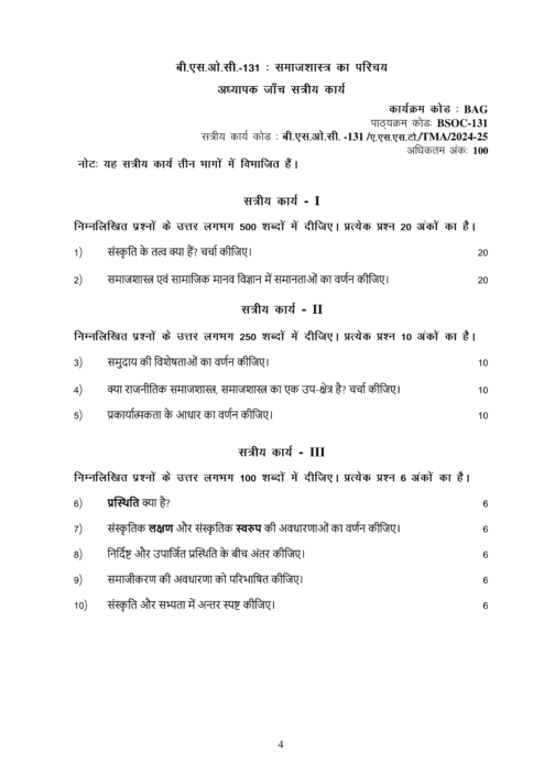 IGNOU BSOC-131 SOLVED ASSIGNMENT 2024-25 HINDI MEDIUM