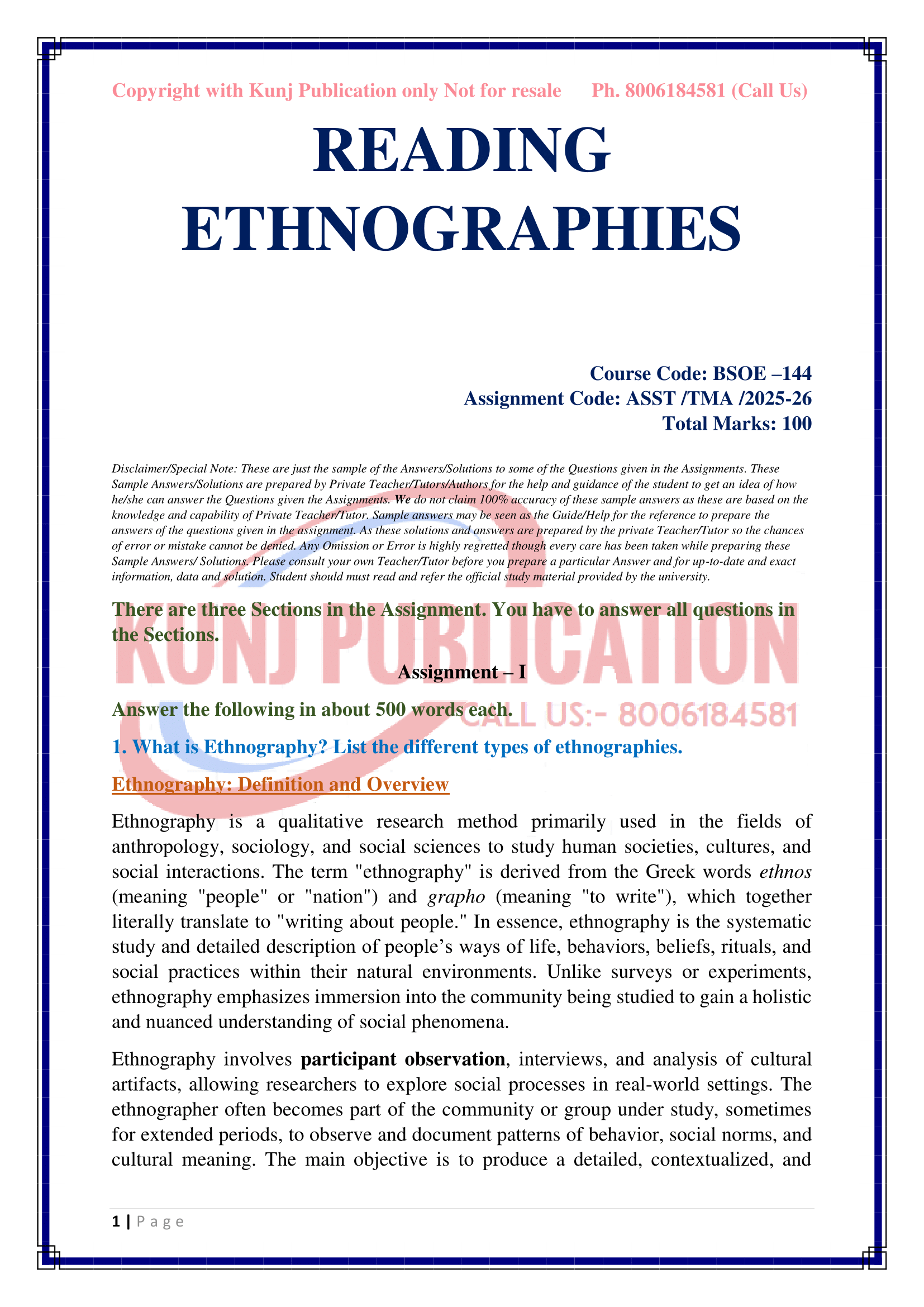 IGNOU BSOE-144 SOLVED ASSIGNMENT 2025-26 ENGLISH MEDIUM