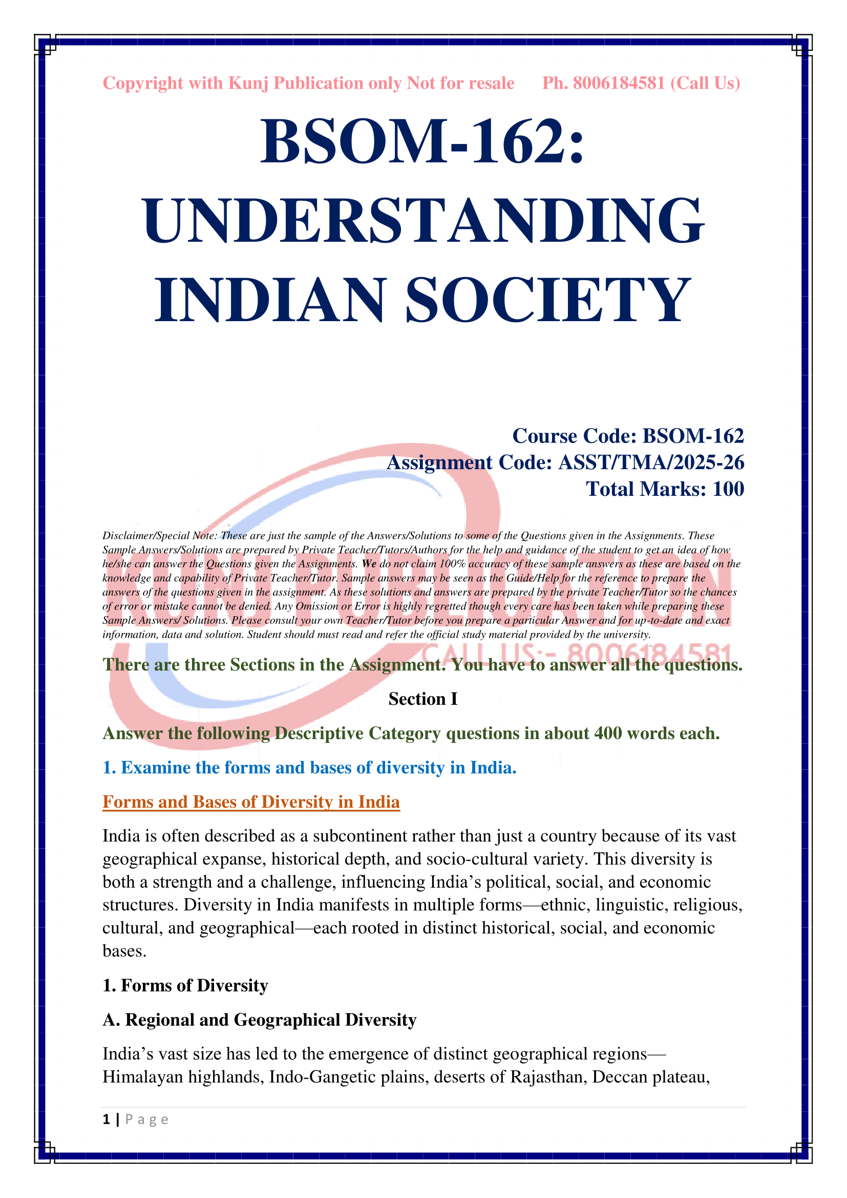 IGNOU BSOM-162 SOLVED ASSIGNMENT 2025-26 ENGLISH MEDIUM