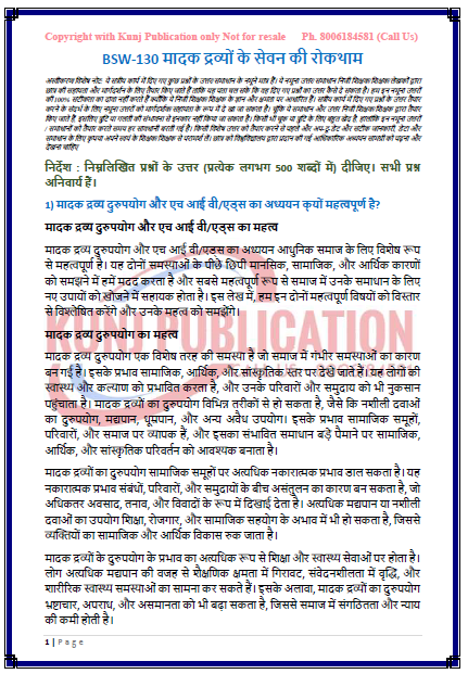 TITLE NAME BSW-130 Solved Guess Paper HINDI MEDIUM