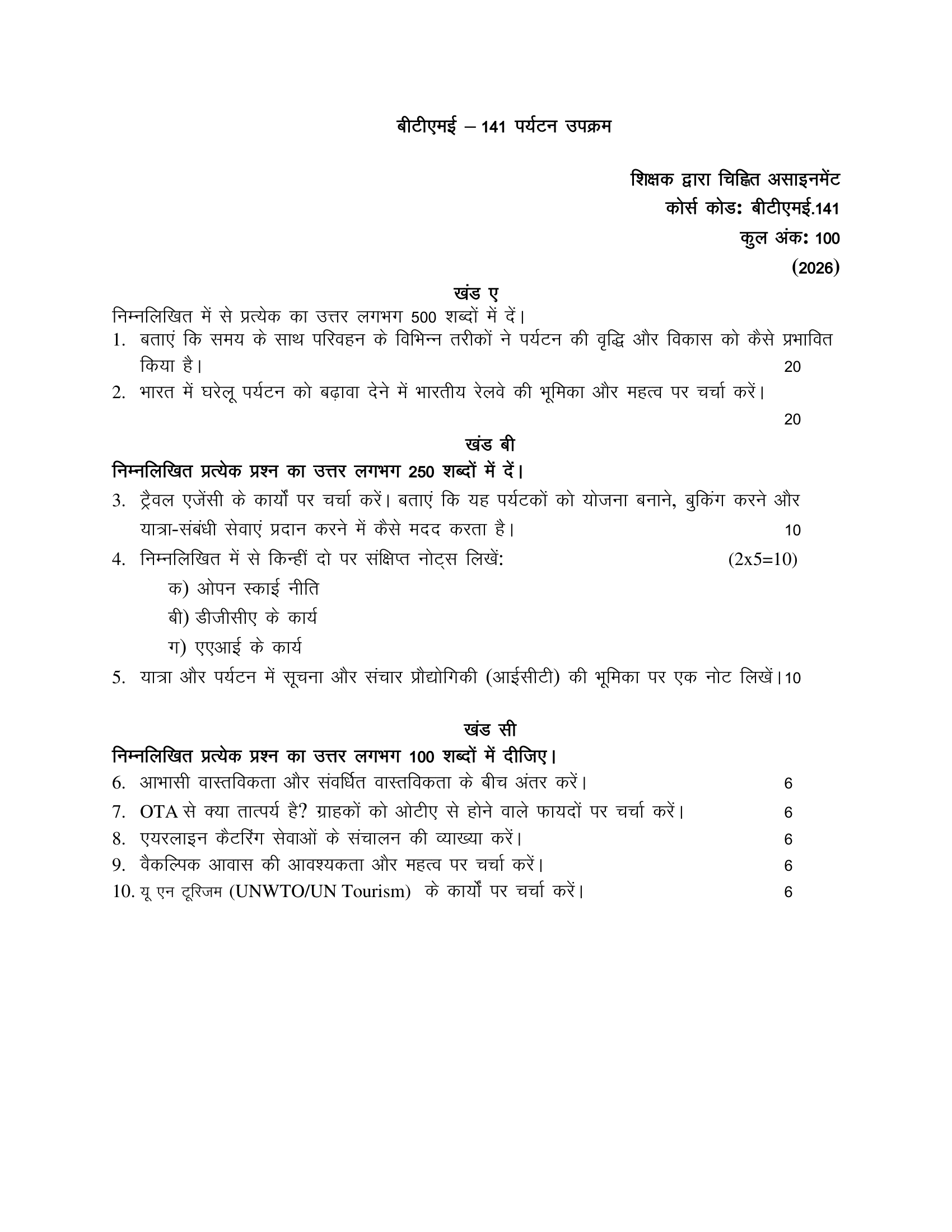 IGNOU BTME-141 SOLVED ASSIGNMENT 2026 HINDI MEDIUM
