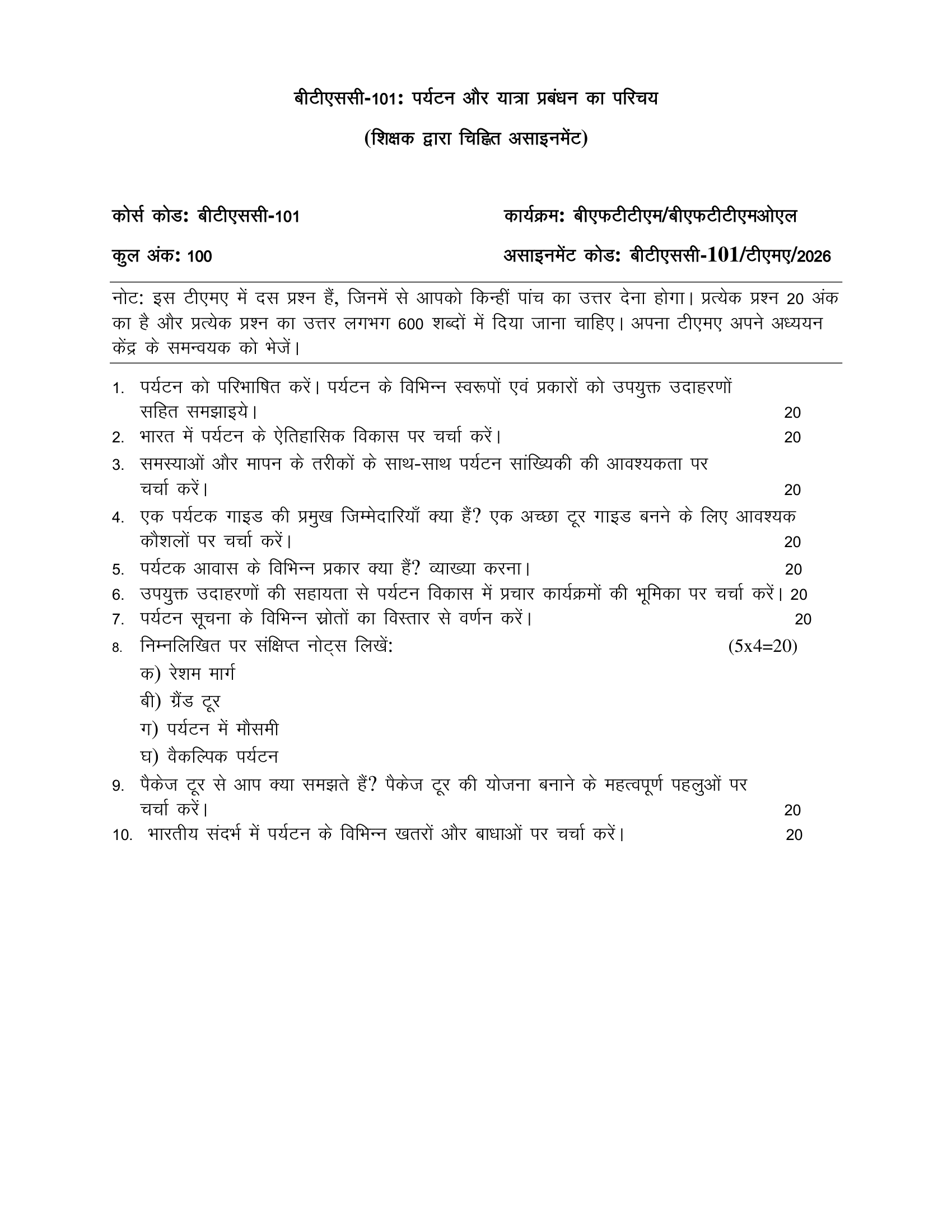 IGNOU BTSC-101 SOLVED ASSIGNMENT 2026 HINDI MEDIUM