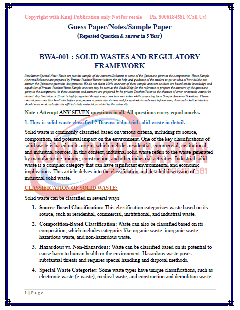 IGNOU BWA-001 SOLVED GUESS PAPER/NOTES/SAMPLE PAPER ENGLISH MEDIUM
