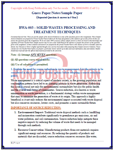 IGNOU BWA-003 SOLVED GUESS PAPER/NOTES/SAMPLE PAPER ENGLISH MEDIUM