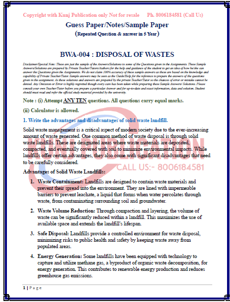 SERVICE TYPE | IGNOU Solved Guess paper/Notes/Sample Paper (Soft Copy/PDF) |