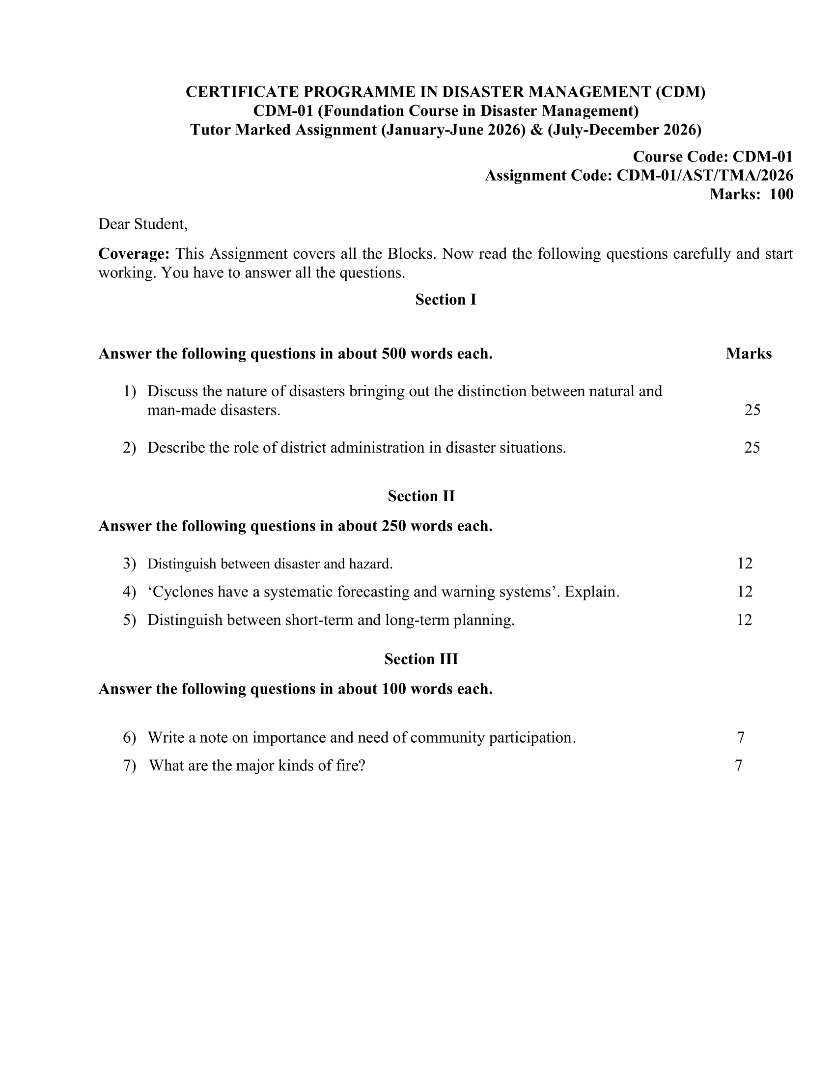 | Course | CERTIFICATE PROGRAMME IN DISASTER MANAGEMENT (CDM) |