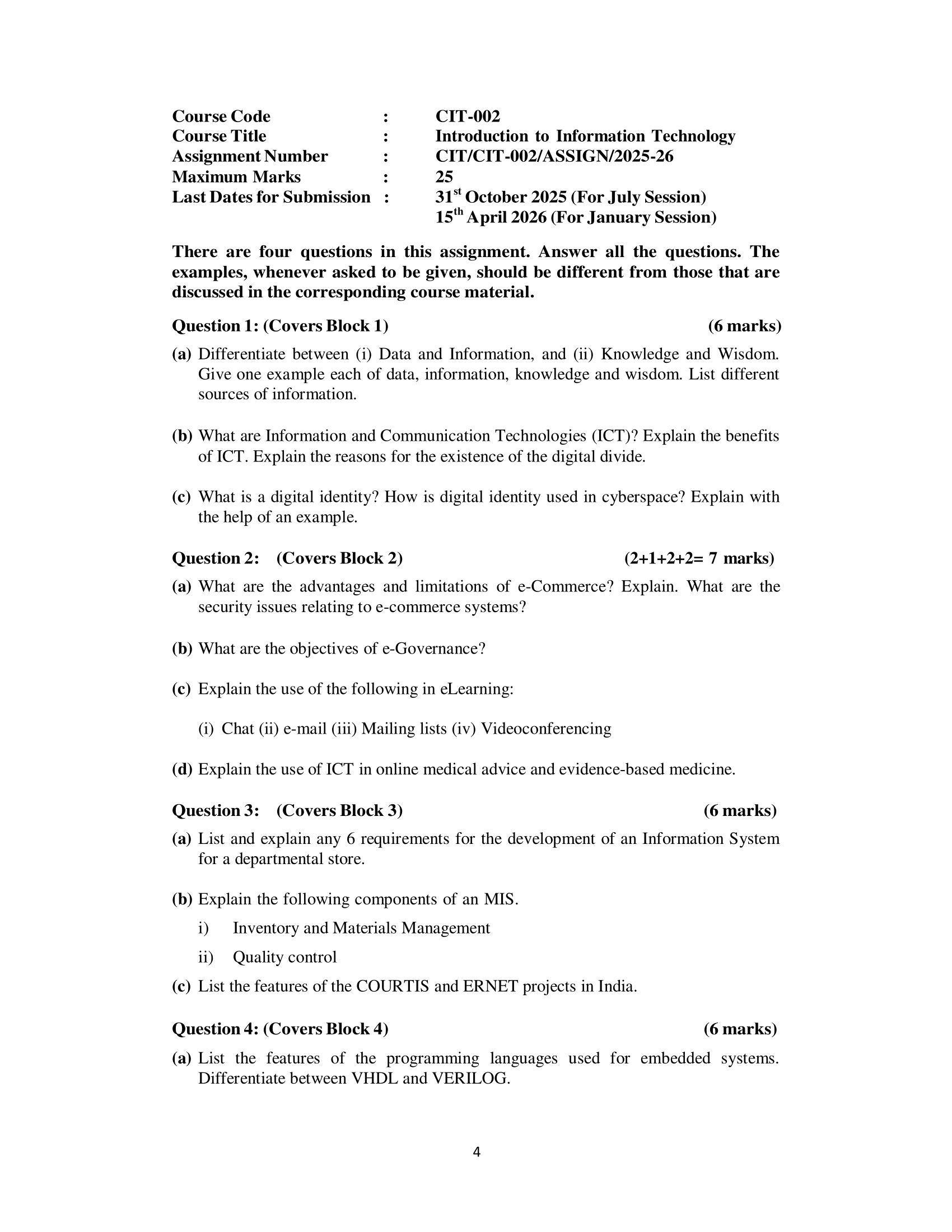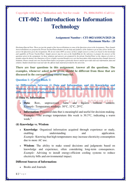 IGNOU CIT-002 SOLVED ASSIGNMENT 2025-26 ENGLISH MEDIUM