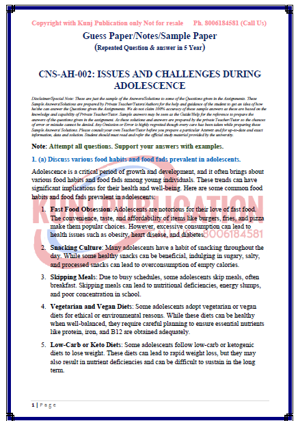 IGNOU CNS-AH-002 SOLVED GUESS PAPER/NOTES/SAMPLE PAPER ENGLISH MEDIUM
