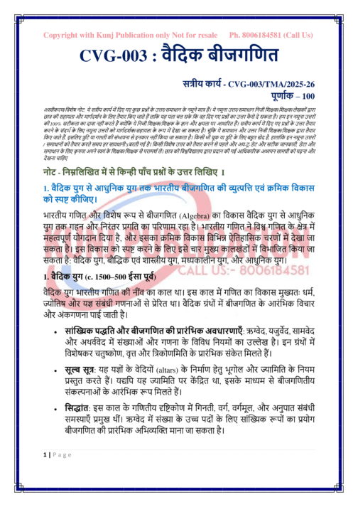 IGNOU CVG-003 SOLVED ASSIGNMENT JULY 2025-JANUARY 2026 SANSKRIT MEDIUM