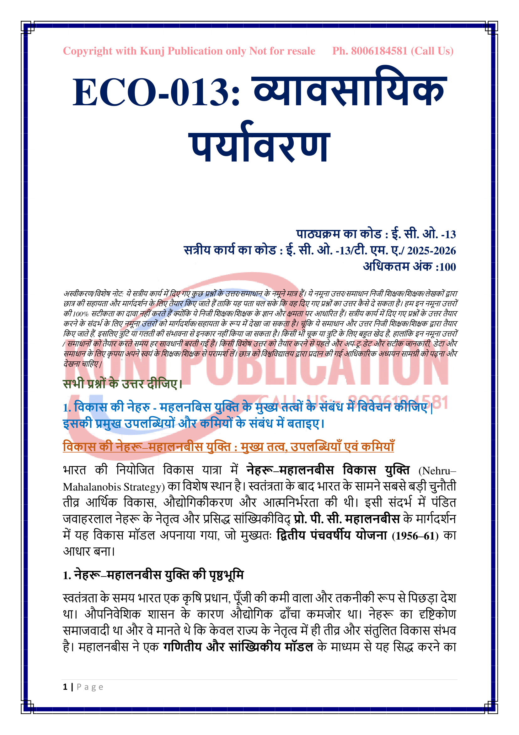 IGNOU ECO-13 SOLVED ASSIGNMENT 2025-26 HINDI MEDIUM