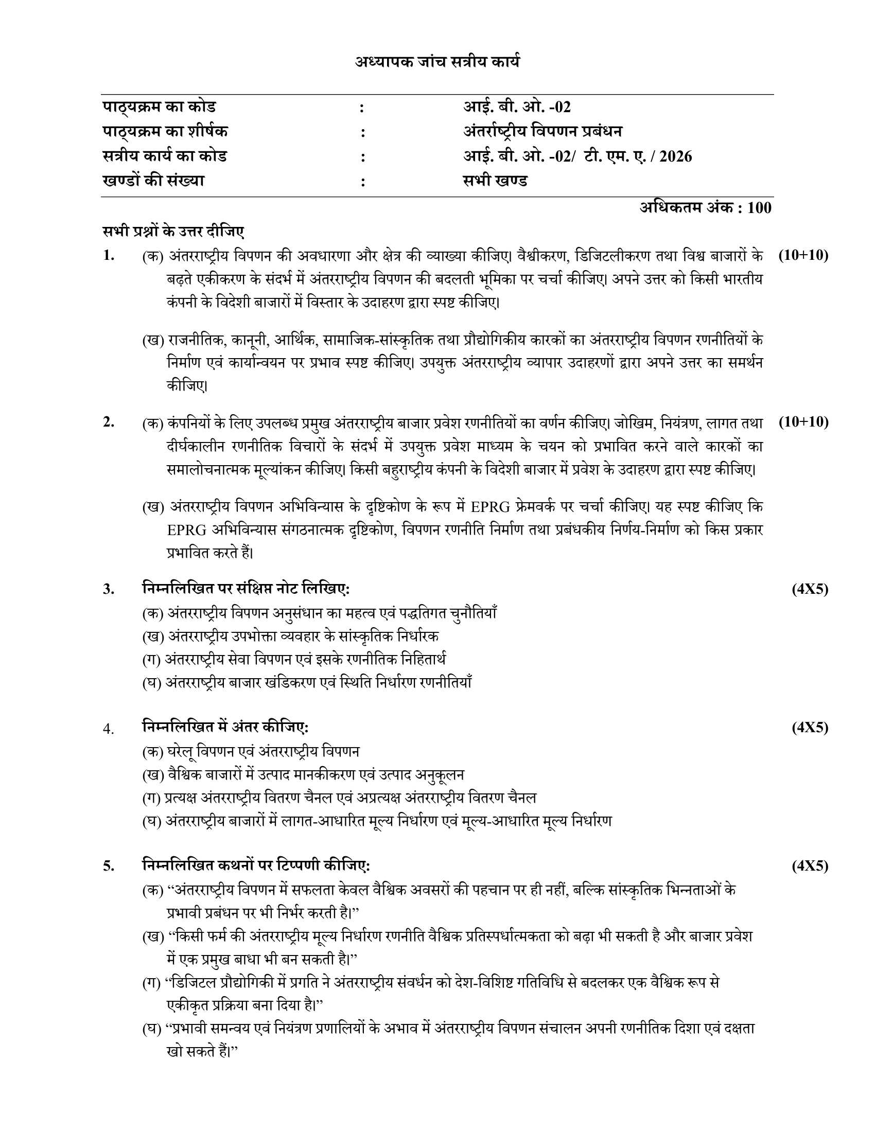 IGNOU IBO-02 SOLVED ASSIGNMENT 2026 HINDI MEDIUM